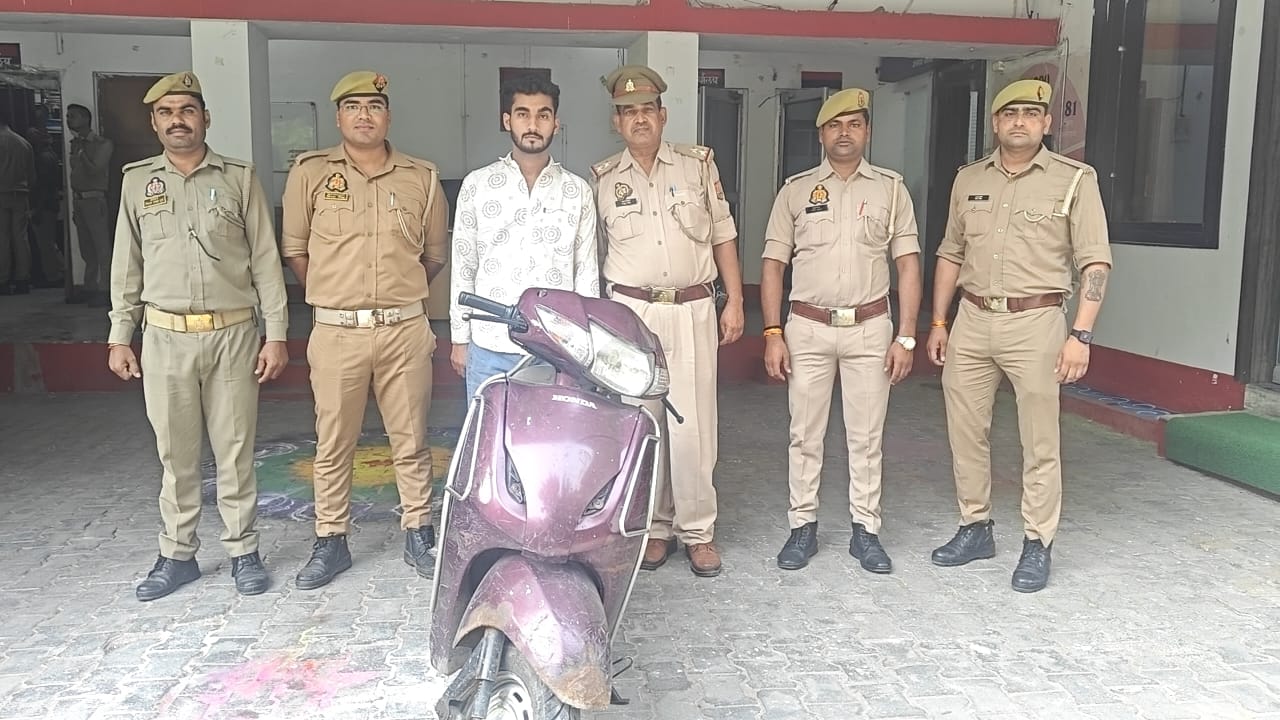झांसी। गत दिनों दिन दहाड़े वृद्ध महिला के गले पर झपट्टा मारकर सोने की चैन लूटने वाले आरोपी स्कूटी सवार को थाना सीपीओ बाजार पुलिस ने गिरफ्तार कर उसके कब्जे से सोने की चैन बरामद कर ली है।जानकारी के मुताबिक गत रोज आवास विकास आरोग्य सदन चौराहा निवासी निशा पांडे ने पुलिस को सूचना देते हुए बताया था कि वह बुधवार की दोपहर अपनी जेठानी के घर कुंडपाथा जा रही थी। जैसे वह पार्क के नजदीक पहुंची तभी एक लाल कलर की स्कूटी सवार युवक आया और झपट्टा मारकर इसके गले से सोने की चैन लूटकर भाग गया था। पुलिस ने मुकदमा दर्ज कर लिया था। इस घटना को एसएसपी बीबीजीटीएस मूर्ति ने गंभीरता से लेकर पुलिस को खुलासा करने के निर्देश दिए थे। एसएसपी के निर्देशन पर आरोपी लुटेरे की तलाश में लगी सीपरी बाजार थाना प्रभारी निरीक्षक विनोद मिश्रा, कांस्टेबल धारा सिंह, पंकज जाट ने शिवपुरी रोड के पास से आरोपी को गिरफ्तार कर उसके कब्जे से सोने की लूटी गई चैन बरामद कर घटना में प्रयुक्त स्कूटी बरामद कर ली। पूछताछ में आरोपी युवक ने अपना नाम दीपांशु मिश्रा निवासी हिंगन कटरा नरिया बाजार झांसी बताया। बताया जा रहा है कि पकड़ा गया युवक भाजपा नेता का रिश्तेदार है। आरोपी को पकड़ने में पुलिस की सहायता में सीसीटीवी फुटेज का अहम योगदान रहा।