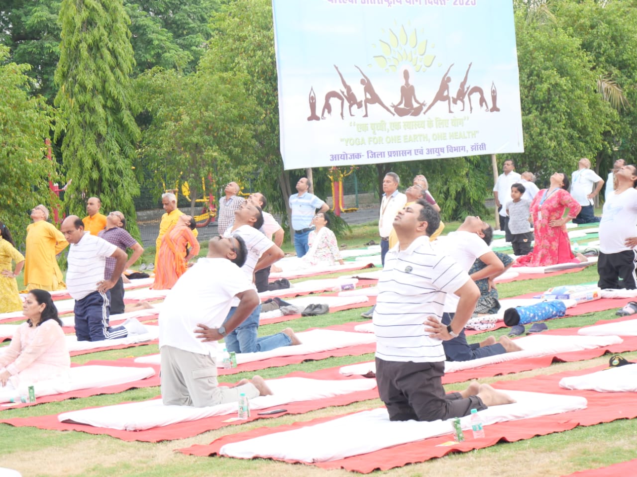 झांसी। ग्यारहवें अंतर्राष्ट्रीय योग दिवस का आज अटल एकता पार्क में शुभारंभ करते हुए योगाभ्यास किया गया। जिसमें शहर के कई गणमान्य नागरिकों ने हिस्सा लिया। स्वास्थ्य शरीर निरोगी काया के तहत देश के प्रधान मंत्री नरेंद्र मोदी के निर्देशन में 15 जून 2025 से 21 जून 2025 तक सात दिवसीय अंतरराष्ट्रीय योग दिवस मनाया जाना है। जिसके चलते आज जनपद झांसी के अटल एकता पार्क में अंतर्राष्ट्रीय योग दिवस का शुभारंभ करते हुए योगाभ्यास किया गया। जिसने मंडलायुक्त विमल कुमार, जिलाधिकारी मृदुल चौधरी, एसएसपी बीबीजीटीएस मूर्ति ने प्रतिभाग लिया। इस दौरान शहर के गणमान्य नागरिक भी उपस्थित रहे ओर सभी ने इस योगाभ्यास किया। जानकारी देते हुए बताया गया कि अंतरराष्ट्रीय योग दिवस पर सात दिवसीय योगाभ्यास किया जाएगा।