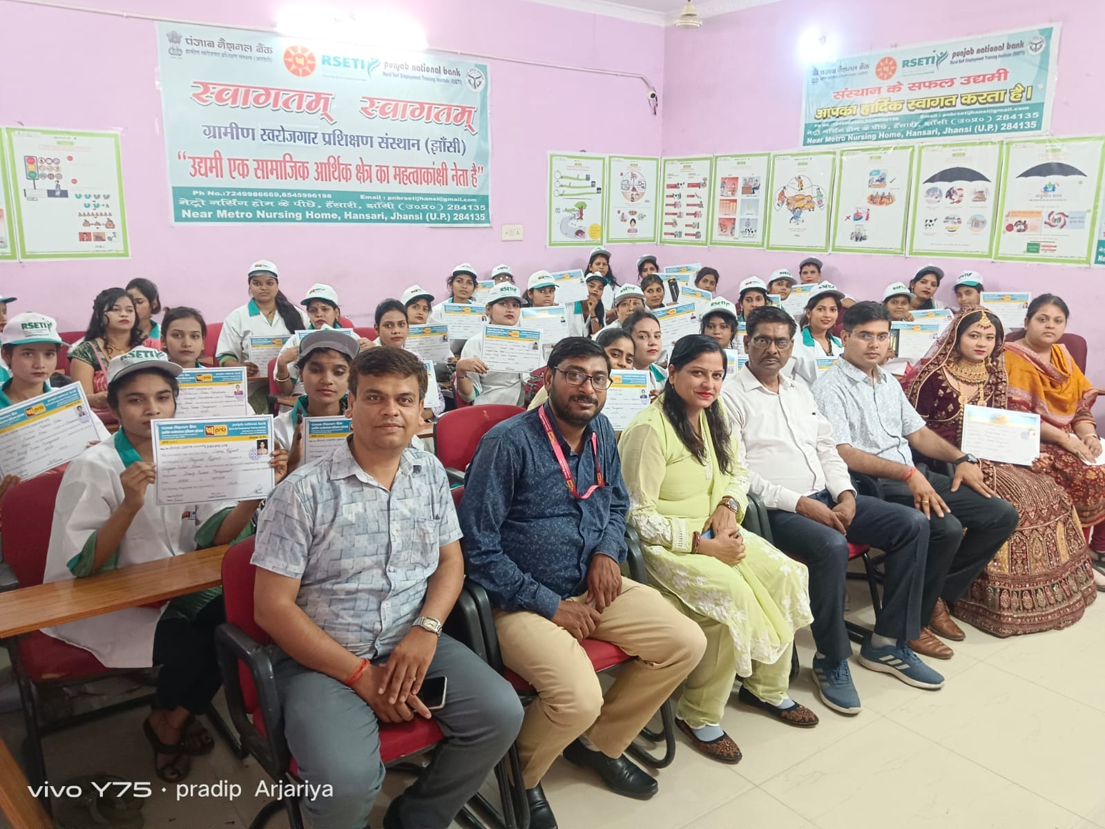 झांसी। पंजाब नैशनल बैंक ग्रामीण स्वरोजगार प्रशिक्षण संस्थान हंसारी झाँसी द्वारा आयोजित 30 दिवसीय ब्यूटी पार्लर प्रशिक्षण कार्यक्रम का समापन हुआ। इस प्रशिक्षण कार्यक्रम के समापन मुख्य अतिथि पी0एन0 निरंजन एवं श्रीमती प्रिया श्रीवास्तव उपस्थिति हुआ। मुख्य अतिथियों द्वारा सभी प्रशिक्षुओ को आत्मनिर्भर बन कर स्वरोजगार करने हेतु प्रेरित किया गया एवं सरकार द्वारा स्वरोजगार करने हेतु चलाई जा रही विभिन्न योजनाओ जैसे मुद्रा योजना, पीएम् स्वनिधि योजना युवा उद्यमी योजना आदि की जानकारी भी दी गयी। तत्पश्चात मुख्य अतिथि द्वारा सभी सफल प्रशिक्षणार्थियों को प्रमाण पत्र का वितरण किया गया। इस 30 दिवसीय प्रशिक्षण कार्यक्रम में डीएसटी ट्रेनर श्रीमति ममता दीक्षित द्वारा प्रशिक्षण दिया गया। अंत में पीएनबी आरसेटी झांसी के निदेशक भुवनेश दुबे द्वारा सभी अतिथियों का आभार प्रकट किया गया। इस दौरान संस्थान में संकाय सदस्य अनुराग दुबे, संकाय सदस्य अभिषेक वर्मा, ऑफिस असिस्टेंट अर्पिता उत्पल पराड़कर एवं प्रदीप कुमार अडजरिया मौजूद रहे।