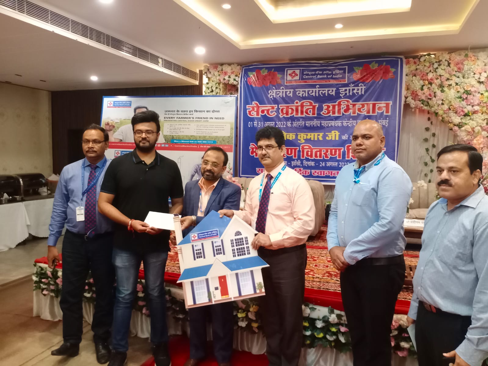 झांसी। माह अगस्त में सेंट्रल बैंक द्वारा चलाए गए माह अगस्त में सेंट क्रांति अभियान के अंतर्गत 35 करोड़ का ऋण वितरण ग्राहकों को वितरित किया गया।बुधवार को स्थानीय होटल में आयोजित कार्यक्रम के दौरान सेंट्रल बैंक ऑफ इंडिया क्षेत्रीय कार्यालय के तत्वाधान में आयोजित कार्यक्रम में ग्राहकों को 35 करोड़ का ऋण वितरण किया गया। सेंट्रल बैंक के मुख्य प्रबंधक सुशील कुमार ने जानकारी देते हुए बताया की उनकी बैंक के द्वारा सातों जिलों में 1942 क्रांति के अंतर्गत एक सेंट क्रांति अभियान चलाया गया। इस अभियान के अंतर्गत सातों जिलों की सेंट्रल बैंक ने अपने अपने ग्राहकों को माह अगस्त में आने वाले आवेदनों पर ऋण स्वीकृत किया था। उन्ही ग्राहकों को ऋण देने के लिए आज कार्यक्रम आयोजित किया गया। इस कार्यक्रम में मुख्यातिथि केंद्रीय कार्यालय के जबरन मेनेजर विवेक कुमार ने दीप प्रवज्जलित कर कार्यक्रम का शुभारंभ किया। कार्यक्रम आयोजक मुख्य प्रबंधक सांदिपन दास गुप्ता रहे। मुख्य प्रबंधक रमाकांत, प्रबंधक अर्चना गुप्ता, प्रशांत वाजपेई मेनेजर, मनीष साहू मेनेजर, जावेद अहमद मेनेजर द्वारा सभी ग्राहकों को ऋण वितरित किए गए। उन्होंने बताया कार्यक्रम में करीब 35 करोड़ का ऋण रिटेल, कृषि, एम एस एम ई के स्वीकृत पत्र भी ग्राहकों को वितरित किए गए।
