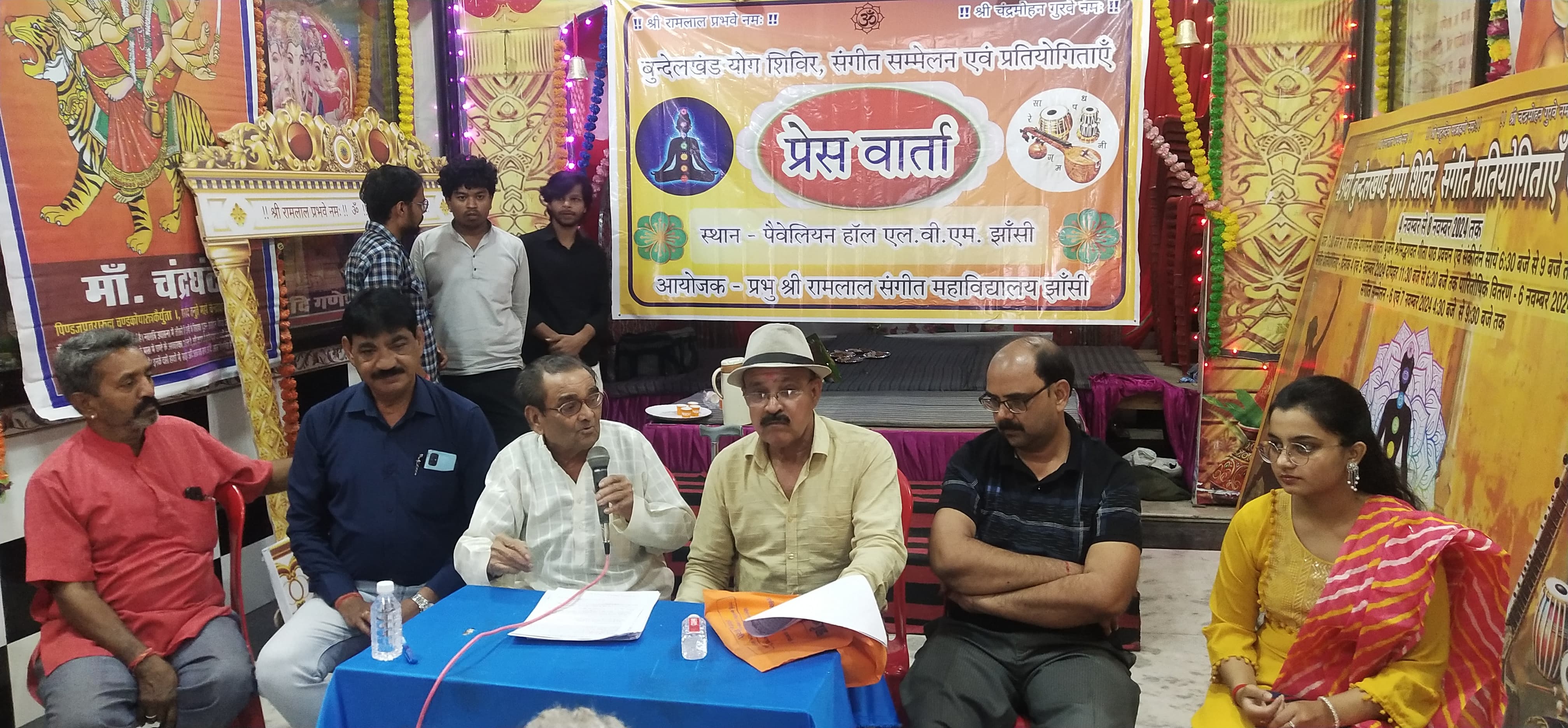 झांसी। बुंदेलखंड राज्य बनाने की मांग को लेकर बुंदेली गायन और प्रतियोगिताओं को बढ़ावा दिए जाने को लेकर प्रतियोगिताओं का आयोजन होने जा रहा है।शनिवार को गणेश सत्संग भवन में आयोजित पत्रकार वार्ता के दौरान कार्यक्रम संयोजक दिनेश भार्गव, महामंत्री डॉक्टर सुनील दीक्षित, संस्था प्राचार्य कृष्ण भूषण झा, सलोनी झा ने जानकारी देते हुए बताया कि प्रभु श्रीराम लाल संगीत महाविद्यालय के तत्वावधान में 49 वा अखिल भारतीय संगीत सम्मेलन एवं संगीत प्रतियोगिताएं शुरू हो रही है। उन्होंने बताया कि भारतीय शास्त्रीय संगीत की समस्त विधाओं गायन वादन नृत्य के प्रचार प्रसार हेतु सन 1976 से बुंदेलखंड संगीत प्रतियोगिताओं/सम्मेलन एवं योग शिविर का अखिल भारतीय स्तर पर वार्षिक आयोजन स्थानीय श्री लक्ष्मी व्यायाम मंदिर प्रांगण में प्रारम्भ हुआ, जिसमे भारत के लगभग सभी प्रान्तों के प्रतियोगी एवं मूर्धन्य कलाकार भाग ले चुके हैं, गत 48 वर्षों से प्रतियोगिताएँ एवं सम्मेलन अनवरत रूप से होते आ रहे हैं जिसका श्रेय सतगुरु देव भगवान की कृपा, झाँसी नगर की संगीत प्रेमी जनता, देश-विदेश के कलाकार, अपने प्रतियोगियों को सम्मलित कराने वाले सभी प्रांतो के संगीत विद्यालय एवं शैक्षणिक संस्थाएं, विद्यालय के कार्यकर्ता एवं श्री लक्ष्मी व्यायाम मंदिर के सभी पदाधिकारियों को जाता है।संगीत प्रतियोगिताओं की विशेषताएं-1. स्थानीय एवं बाहर के सभी प्रतिभागियों उनके अभिभावक व टीम इंचार्जों के स्वल्पाहार, भोजन व रहने की व्यवस्था प्रभु श्री रामलाल संगीत विधालय की ओर से की जाती है।2. सभी प्रतिभागियों को पुरस्कार एवं प्रमाण पत्र प्रदान किये जाते हैं। 3प्रतियोगिताओं में केवल शास्त्रीय एवं लोक संगीत के प्रतिभागी ही भाग ले सकते हैं।49वां योग शिविर दिनांक 04-11-2024 से 08-11-2024इस वर्ष भी उपरोक्त तिथियों में योग शिविर श्री लक्ष्मी व्यायाम मन्दिर, झाँसी के पवेलियन हॉल में आयोजित है। योग योगेश्वर महाप्रभु श्री रामलाल महाराज ने नेपाल हिमालय से इस अवनि मण्डल पर आकर जन-जन के दैहिक, भौतिक एवं आध्यात्मिक कल्याण हेतु अपने योगेश्वर्य के संकल्प से निम्नलिखित चार दिव्य 1. जीवन तत्व साधन 2. अमर तत्व साधन 3. यौवन तत्व साधन 4. फल तत्व साधन क्रियाओं का निर्माण किया जिनके निरंतर अभ्यास से नाड़ी शोधन के साथ अन्तः जगत में प्रवेश का मार्ग भी खुल जाता है।शिविर में प्रातः 7 से 8 बजे तक योगासनों, जल नेति सूत्र नेति का प्रशिक्षण, एवं 11 बजे तक प्रवचन आदि होंगे। 28 अक्टूबर 2024 के बाद कोई भी स्थानीय प्रवेश पत्र मान्य नहीं होगा।सभी योग जिज्ञासुओं एवं अध्यात्म में आस्था रखने वाले महानुभावों से अनुरोध है कि इस परम पावन योग शिविर में सम्मिलित होकर अपने जीवन को कृतार्थ करें।बुन्द