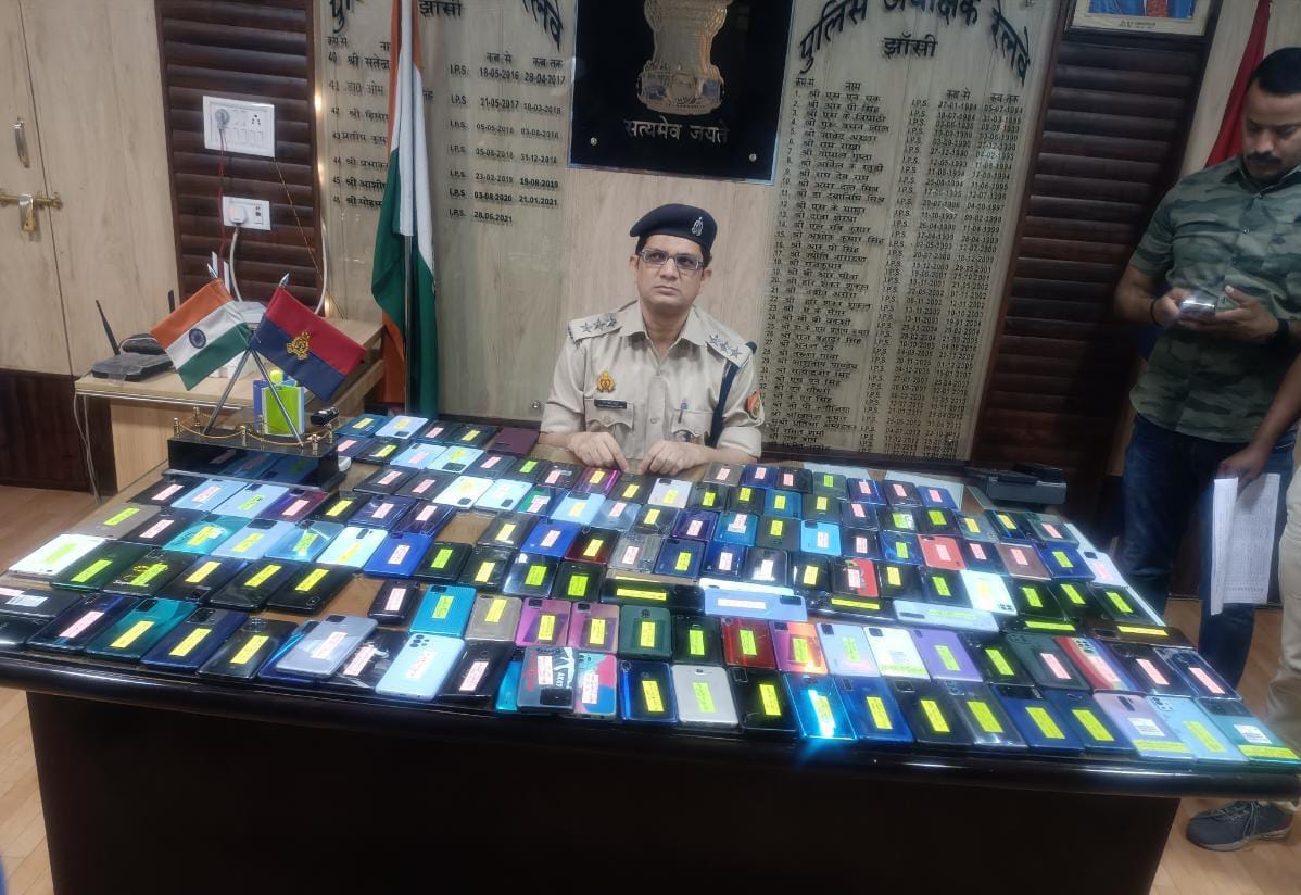 झांसी। झांसी जीआरपी ने बड़ा खुलासा करते हुए 54 लाख कीमत के यात्रियों के खोए हुए मोबाइल बरामद कर यात्रियों को लोटाए।मंगलवार को जीआरपी झांसी एसपी ने प्रेस वार्ता के माध्यम से जानकारी दी की ट्रेन में यात्रा करने वाले यात्रियों के चोरी हुए तथा खोए हुए मोबाइल की घटनाएं लगातार बढ़ रही थी। इन घटनाओं को गंभीरता से लेकर अभियान चलाकर 360 मोबाइल फोन जिनकी कीमत 54 लाख रुपया है। बरामद कर मोबाइल के स्वामियों को बुलाकर उनके सुपुर्द किया। अपने खोए हुए मोबाइल पाकर सभी के चेहरों पर मुस्कान लोट आई।