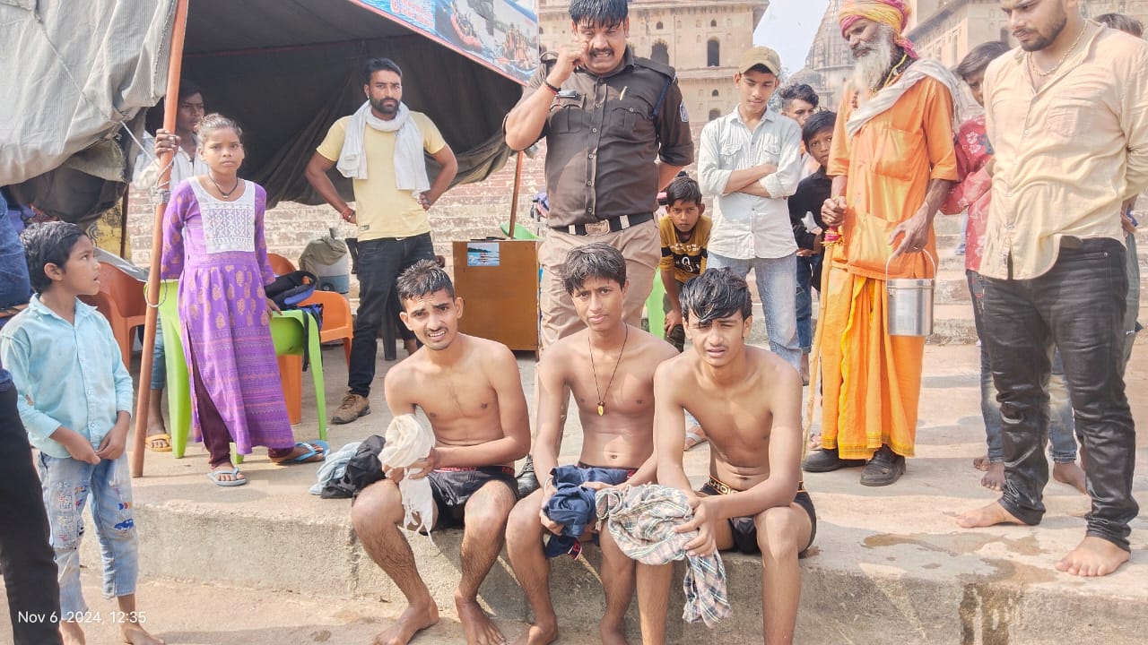झांसी। मध्यप्रदेश के ओरछा में नदी में नहाने गए झांसी के दो युवक गहरे पानी में डूब गए। इससे पहले कि दोनों की जान जोखिम में जाती वहां सुरक्षा में तैनात मध्यप्रदेश पुलिस के जवान मनीष दुबे ने अपनी जान की परवाह किए बगैर नदी में छलांग लगा दी और दोनों युवकों को जिंदा बाहर निकाल लिया। सिपाही की इस बहादुरी का वीडियो शोशल मीडिया पर जमकर वायरल हो रहा साथ ही लोगों ने सिपाही के सराहनीय कार्य की जमकर प्रशंसा की। जानकारी के मुताबिक झांसी के प्रेमनगर थाना क्षेत्र स्थित बिजौली निवासी तीन साथी युवक संस्कार यादव और निखिल गुप्ता, अनिल विश्वकर्मा आज दोपहर को मध्यप्रदेश के ओरछा स्थित नदी में कंचना घाट पर नहाने गए थे। जैसे ही संस्कार यादव और साथी नहाने नदी में उतरे कुछ देर बाद नदी के पानी के बहाव के चलते वह गहरे पानी में डूबने लगे। खुद को गहरे पानी में डूबता देख दोनों युवकों ने जान बचाने की गुहार लगाते हुए चीखने चिल्लाने लगे। लेकिन वहां मौजूद लोग गहरे पानी को देख सिर्फ तमाशबीन बने रहे किसी की हिम्मत नहीं हुई कि नदी में कूद कर दोनो युवकों की जान बचा सके। वही पास मे सुरक्षा में तैनात मध्यप्रदेश पुलिस का जवान मनीष दुबे वर्तमान तैनात मध्यप्रदेश के थाना ओरछा की चक्रपुर चौकी ने अपनी जान की परवाह किए बगैर बहादुरी का परिचय देते हुए अपने कर्तव्यों का पालन कर नदी में छलांग लगा दी और दोनों युवकों को सुरक्षित सकुशल नदी से बाहर निकाल लिया। सिपाही की इस बहादुरी की लोगों ने जमकर प्रशंसा की साथ ही सिपाही का यह वीडियो शोशल मीडिया पर जमकर वायरल हो रहा है।