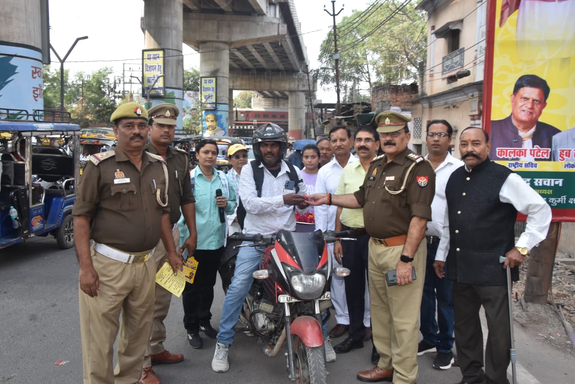 झांसी। यातायात माह 2024 का जागरूकता रथ अनवरत रूप से चलते-चलते सीपरी बाजार झांसी के सबसे व्यस्ततम चित्रा चौराहे पर आ पहुंचा, यातायात जागरूकता अभियान के मुख्य अतिथि संभागीय परिवहन विभाग से एआरटीओ संजय सिंह रहे , व विशिष्ट अतिथि के रूप मे सेकेन्ड इचार्ज इंस्पेक्टर संत कुमार, ट्रैफिक पुलिस से टी एस आई प्रेमपाल सिंह ,कृष्ण कुमार, सिविल डिफेंस कोर के पूर्व चीफ वार्डन बालकिशन कुशवाहा, चमनगंज चौकी प्रभारी अमित तोमर उपस्थित रहे। कार्यक्रम का संयोजन यातायात पुलिस में ट्रैफिक वार्डन कुमारी प्रगति शर्मा व दीपशिखा शर्मा द्वारा किया गया। व्यस्ततम चौराहों पर यातायात जागरूकता अभियान चलाने का मुख्य उद्देश्य लोगों को यातायात नियमों के प्रति जागरूक करना होता है अतः इसी क्रम में आज चित्रा चौराहे पर संभागीय परिवहन विभाग व यातायात विभाग संयुक्त रूप से जागरूक करने निकल पड़े, जिसमें हेलमेट धारक दो पहिया वाहन चालकों व सीट बेल्ट धारक चार पहिया वाहन चालकों को गुलाब का फूल देकर सम्मानित किया गया साथ ही यातायात नियमों का पालन न करने वाले वाहन चालकों को पंपलेट्स व हिदायत देकर जागरूक किया गया कि आपका जीवन अनमोल है आप अपने लिए और अपने अपनों के लिए हेलमेट अवश्य पहनें यातायात नियमों का पालन जरूर करें। कार्यक्रम में समाजसेवी मंटू साहू छात्रा यशस्वी शर्मा का विशेष सहयोग रहा । कार्यक्रम के अन्त मे कार्यक्रम संयोजक कु प्रगति शर्मा द्वारा मंचासीन अतिथियों को स्मृति चिन्ह भेंट कर धन्यवाद व्यक्त किया गया। उक्त अवसर पर ट्रैफिक चीफ वार्डन शिव प्रसाद तिवारी,विनय ओमहरे, राशिद, रवि साहू, टिंकल पाठक ,पंकज बड़ोने, रामबाबू आदि बड़ी संख्या में संभ्रान्त नागरिकगण उपस्थित रहे। संचालन छात्रा यशस्वी शर्मा ने किया।