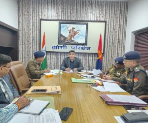 झांसी। महानिरीक्षक झाँसी परिक्षेत्र झाँसी आकाश कुलहरि महोदय द्वारा झाँसी परिक्षेत्र के जनपद झांसी , जालौन व ललितपुर के जनपद प्रभारियों के साथ कैम्प कार्यालय में मासिक अपराध समीक्षा बैठक आहूत की गयी। जिसमें शासन की मंशा के अनुरूप जीरो टॉलरेंस की नीति के तहत प्रभावी कार्यवाही हेतु आवश्यक दिशा निर्देश दिए गये जिसमें हत्या लूट डकैती, चोरी, नकबजनी, महिलाओं/बच्चों, पाक्सो, एससी/एसटी अत्याचार/उत्पीड़न, सम्पत्ति सम्बन्धी व गम्भीर अपराधों आदि की समीक्षा कर अपराध एवं अपराधियों पर प्रभावी कार्यवाही एवं नियंत्रण हेतु प्रभावी कार्ययोजना बनाकर कानून व्यवस्था को सुदृढ़ बनाये रखने हेतु आवश्यक दिशा निर्देश दिये गये।