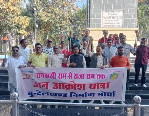 16 फरवरी को चित्रकूट से प्रारम्भ होकर जन आक्रोश रथ यात्रा बांदा, पन्ना, दमोह, सागर, टीकमगढ़, ललितपुर, दतिया, जालौन, हमीरपुर, महोबा, छतरपुर, निवाड़ी से झांसी होते हुए राम राजा सरकार की नगरी ओरछा धाम में समाप्त होगी। महारानी लक्ष्मीबाई पार्क से चित्रकूट यात्रा में शामिल होने के लिए अशोक सक्सेना, रघुराज शर्मा, वरुण अग्रवाल, गिरजा शंकर राय, हनीफ खान, पंकज रावत, नरेंद्र कुशवाहा, अमित खंगार, उत्कर्ष साहू, रजनीश श्रीवास्तव,अनिल कश्यप, प्रदीप नाथ झा, प्रभुदयाल कुशवाहा, अमित त्रिपाठी , कुंती राय, शाहजहांबेग़म, बॉबी बेग़म ललितपुर, राजेंद्र कुमार पूर्व पार्षद, आदि ने बुंदेलखंड राज्य निर्माण मोर्चा योद्धाओ बुंदेली जन आक्रोश यात्रा में झाँसी से वनबासी राम चित्रकूट के लिए रबाना हुये |