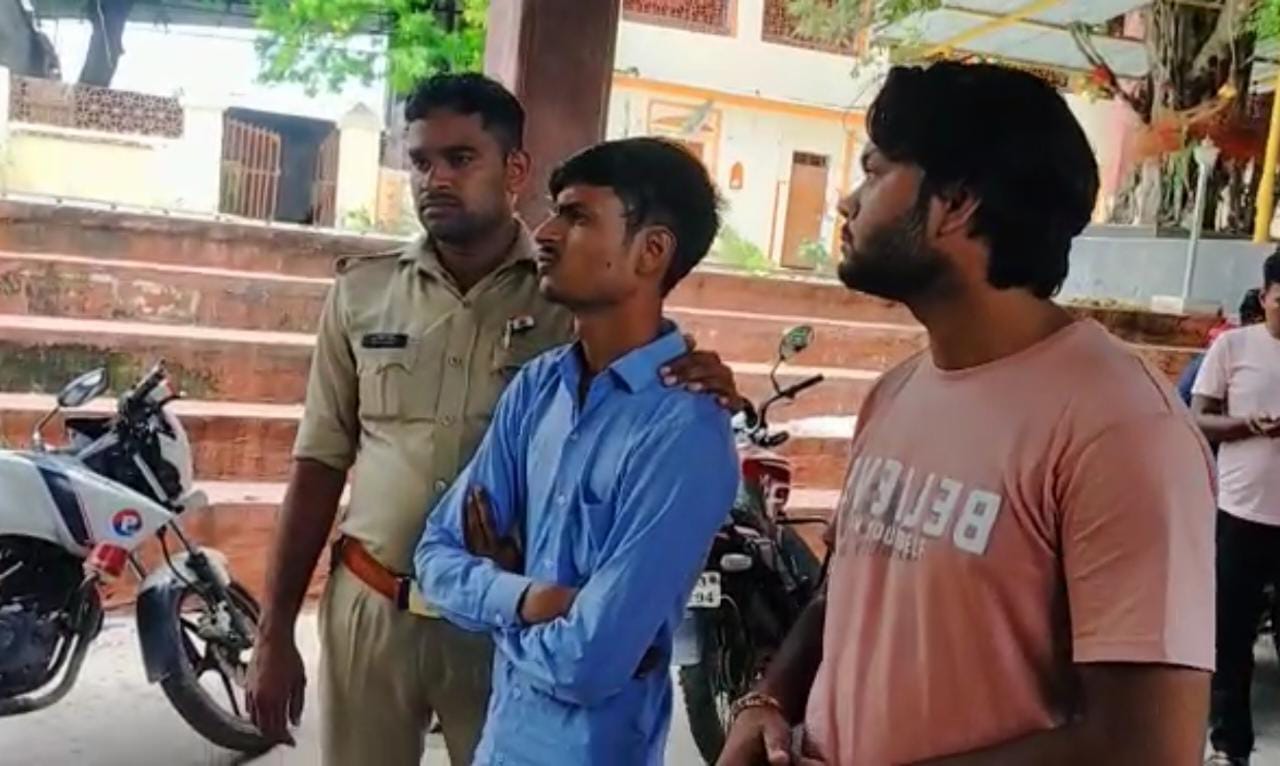झांसी। भगवान के मंदिर को दूषित कर रहे दो प्रेमी जोड़ों को पकड़ कर लोगों ने जमकर धुना और बाद में उन्हें पुलिस के हवाले कर दिया। पुलिस दोनो प्रेमी जोड़ों से पूछताछ कर रही है।जानकारी के मुताबिक शहर कोतवाली क्षेत्र लक्ष्मी गेट बाहर स्थित प्रसिद्ध मां काली मंदिर परिसर में आज दोपहर दो प्रेमी जोड़े फूल बाग में घुस गए और अश्लीलता कर मंदिर परिसर को दूषित करने लगे। प्रेमी जोड़ों की गलत हरकत को देख मंदिर में पहुंचे श्रद्धालुओं ने उन्हे रंगे हाथ पकड़ लिया और जमकर धुनाई कर पुलिस को सूचना दी। सूचना पर पहुंची कोतवाली पुलिस ने दोनो प्रेमी जोड़ों को हिरासत में लेकर थाने ले आई। बताया जा रहा युवतियां झांसी और युवक मध्य प्रदेश ग्वालियर के रहने वाले है। पुलिस उनसे पूछताछ कर रही है।