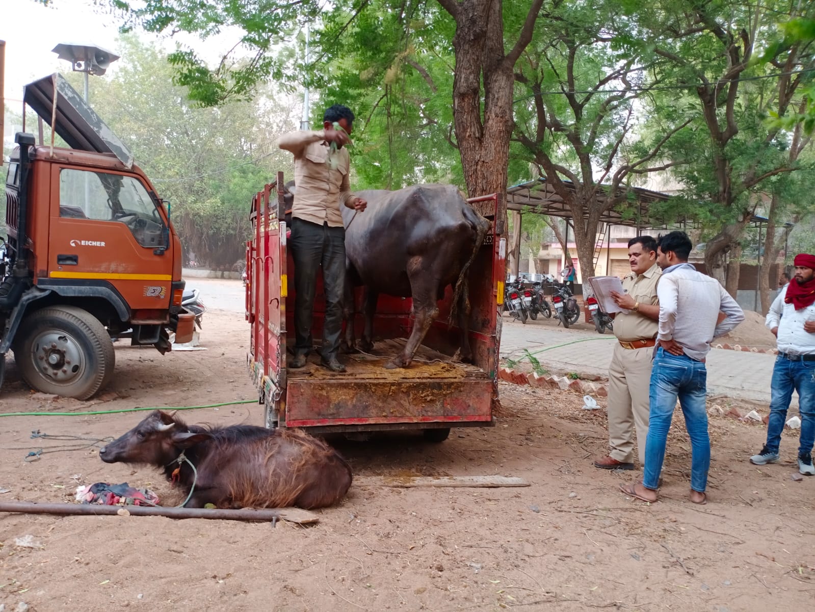 झांसी। पशु क्रूरता के खिलाफ चलाए जा रहे लगातार अभियान के तहत थाना सीपरी बाजार पुलिस ने एक भैंस ओर छह पड़े जिंदा बरामद करते हुए दो लोगों को हिरासत में ले लिया है।जानकारी के मुताबिक गौ रक्षा दल के कार्यकर्ता प्रशांत गुप्ता ने सोमवार की सुबह सीपरी बाजार पुलिस को सूचना देते हुए बताया की दो व्यक्ति लोडिंग गाड़ी संख्या यूपी 93 सीटी 3327 से कुरूरता पूर्वक जानवरों को भरकर उनके वध करने के लिए ले जा रहे है। इस सूचना पर चमन गंज चौकी प्रभारी पुलिस बल के साथ सिपरी बाजार के ओवर ब्रिज पर पहुंच कर घेराबंदी कर गाड़ी को रोक लिया। गाड़ी की तलाशी लेने पर उसके अंदर कुरुरता पूर्वक एक के ऊपर एक बैठाई गई छह पड़े और एक भैंस को जिंदा बरामद कर लिया। पकड़े गए दोनो युवकों ने अपने नाम विशाल यादव निवासी दिनारा तथा दूसरे ने अपना नाम सिकंदरा निवासी रोशन बताया। पकड़ा गया गाड़ी चालक विशाल यादव का मध्य प्रदेश पुलिस में सिलेक्शन हो गया है, उसका केवल मेडिकल परीक्षण होना था। घर की आर्थिक और नोकरी के लिए गए कर्ज को चुकाने के लिए वह जानवरों को लाने ले जाने का काम करता था।