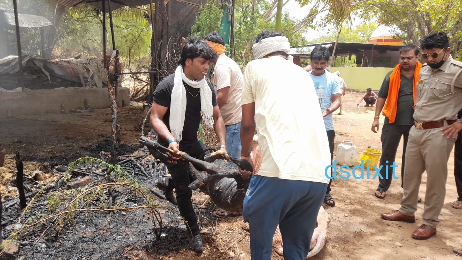 नीम वाली माता मंदिर स्थित गौ शाला में लगी आग, एक बछड़े की जलकर मौत, कई गाय आग से झुलसी