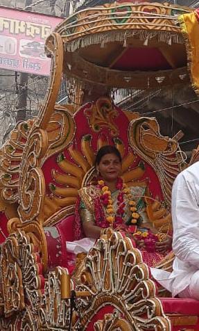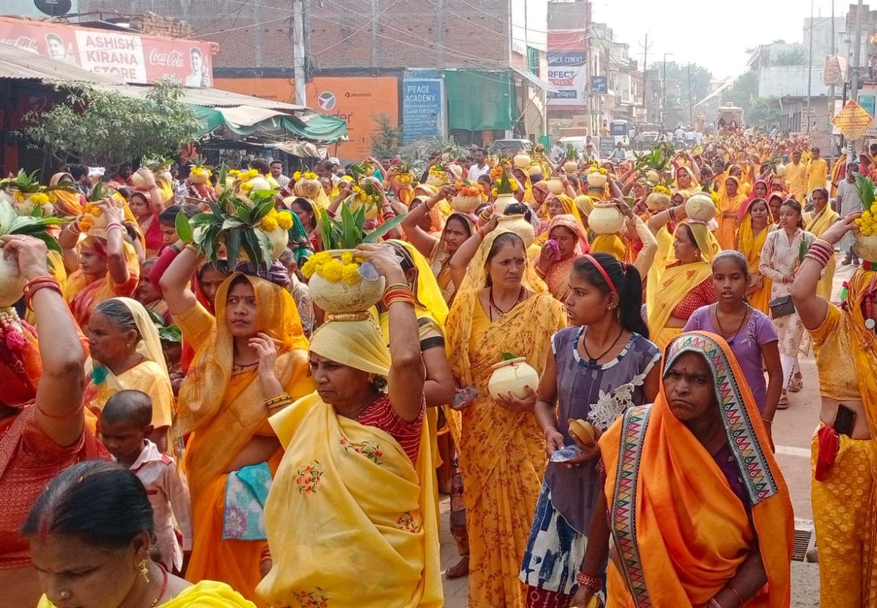 झांसी। मां संतोषी माता की प्रतिमा की पुनः स्थापना पर विशाल कलश यात्रा का भ्रमण हुआ। साथ ही कलश यात्रा का जगह जगह फूल मालाओं की वर्षा से स्वागत किया गया। वही दोपहर को कन्या भोज का आयोजन हुआ। देर शाम बागेश्वर धाम सरकार के गायक, ओर बुंदेली गायक कविता शर्मा द्वारा माता के भजनों की प्रस्तुति दी जाएगी।शुक्रवार को उन्नाव गेट बाहर स्थित पंचवटी कॉलोनी पानी की टंकी के पास मां संतोषी माता मन्दिर का नव निर्माण हुआ है। इस मंदिर में मां संतोषी की प्रतिमा स्थापित होनी है। इसके लिए आज विशाल कलश यात्रा का आयोजन किया गया। कलश यात्रा पंचकुइया मंदिर से प्रारंभ हुई। जिसमें सैंकड़ों महिलाएं पीले वस्त्र धारण कर सर पर पानी से भरा कलश लेकर आगे आगे चल रही थी। पीछे भगवानों के स्वरूप नन्हे मुन्ने बच्चे रथ में सवार थे जो आकर्षण का केंद्र रहे। सबसे पीछे मंदिर की संचालिका पिंकी कुशवाह रथ पर सवार थी। श्रद्धालुओं ने कलश यात्रा ओर भगवान के स्वरूपों सहित मंदिर संचालिका का जगह जगह स्वागत किया। कलश यात्रा पंचकुइया मंदिर से होते हुए गांधीघर का टपरा से सांई की तकिया होते हुए उन्नाव गेट से निकल कर पंचवटी कॉलोनी पानी की टंकी के पास मन्दिर प्रांगण में समाप्त हुई। इसके बाद कन्या भोज का आयोजन किया गया। वही देर शाम मन्दिर में जागरण आयोजित किया जाएगा। जिसमें बागेश्वरधाम के गायक खनिज देव सिंह, ओर बुंदेली गायक कविता शर्मा द्वारा जागरण में माता की भक्ति का रस बरसाएंगे। इस दौरा श्रद्धालुओं ने बताया कि पूर्व में मंदिर कॉलोनी में स्थापित था। लेकिन अब मंजीर को विशाल रूप में बनाया गया गया है। इसलिए मन्दिर में मां संतोषी की प्रतिमा पुनः स्थापित की जा रही है।