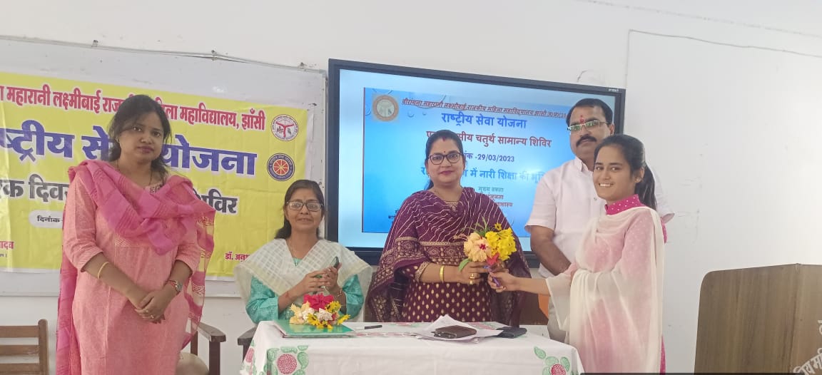 झांसी। वीरांगना महारानी लक्ष्मी बाई राजकीय महिला महाविद्यालय झांसी में राष्ट्रीय सेवा योजना के सामान्य शिविर के अंतर्गत चतुर्थ एक दिवसीय शिविर का आयोजन महाविद्यालय में किया गया। कार्यक्रम का प्रारंभ दुर्गा अष्टमी के अवसर पर समस्त स्वयंसेविकाओं का तिलकोत्सव व पुष्पगुच्छ देकर किया गया। तत्पश्चात प्रथम सत्र में एक निबंध प्रतियोगिता का आयोजन किया गया जिसका मुख्य विषय था नारी शिक्षा की आवश्यकता जिसमें प्रथम स्थान पूजा (बीए तृतीय सेमेस्टर), द्वितीय स्थान आसना फातिमा (बीए प्रथम सेमेस्टर) तथा तृतीय स्थान निकिता राय (बीए तृतीय सेमेस्टर) ने प्राप्त किया। द्वितीय सत्र में राष्ट्र निर्माण में नारी शिक्षा की भूमिका विषय पर व्याख्यान का आयोजन किया गया। जिसमें मुख्य वक्ता के रूप में महाविद्यालय की शिक्षा शास्त्र विभाग की प्राध्यापिका अंजूलता उपस्थित रही। उन्होंने स्वयंसेविकाओं को प्राचीन काल से लेकर आधुनिक काल तक महिला शिक्षा के संबंध में विस्तारपूर्वक वर्णन किया और बताया कि महिला किसी भी समाज की धुरी होती है तो उसका स्थान समाज में समान होना अत्यंत आवश्यक है ।राजनीति विज्ञान वरिष्ठ प्राध्यापिका डॉ ज्योति सिंह गौतम द्वारा स्वयंसेविकाओं को बताया गया कि महिलाओं पर दोहरी जिम्मेदारियों का बोझ होता है जिसे वह बिना किसी तनाव के संपन्न करती हैं। क्योंकि महिलाओं में धैर्य की प्रधानता रहती है ।कार्यक्रम की अध्यक्षता महाविद्यालय की प्राचार्या डॉ. अनुभा श्रीवास्तव द्वारा तथा कार्यक्रम का संचालन राष्ट्रीय सेवा योजना इकाई प्रथम की कार्यक्रम अधिकारी डॉ रेनू सिंह द्वारा किया गया ।धन्यवाद ज्ञापन राष्ट्रीय सेवा योजना इकाई प्रथम के कार्यक्रम अधिकारी डॉ. अजय शंकर यादव द्वारा किया गया। कार्यक्रम में महाविद्यालय के समस्त प्राध्यापक व कर्मचारीगण उपस्थित रहे।
