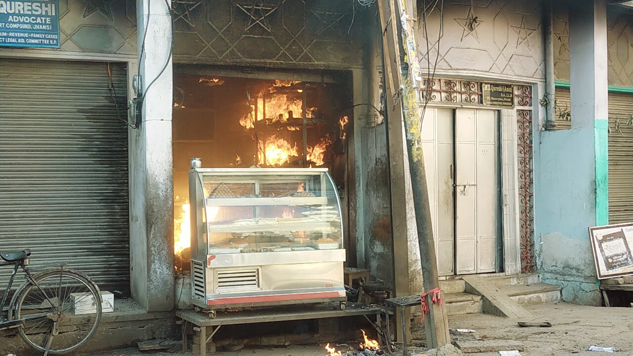 झांसी। कोतवाली थाना क्षेत्र के बड़ागांव गेट बाहर मिठाई की दुकान में रखे गैस सिलेंडर से रिवाज होने पर भीषण आग लग गई। जिससे आग की चपेट में आने से दुकान मालिक गंभीर रूप से झुलस गया। वही गैस सिलेंडर विस्फोट से फट गया। दुकान में भीषण आग देख वहां अफरा तफरी का माहौल बन गया। सूचना मिलते ही फायर बिग्रेड टीम मौके पर रवाना हो गई।जानकारी के मुताबिक कोतवाली क्षेत्र के बड़ागांव गेट चौकी के पास रज्जू मिठाई वाले की दुकान है। आज सुबह वह दुकान के अंदर रखे गैस भट्ठी पर मिठाई बना रहा था। उसी दौरान रिसाव होने से भीषण आग लग गई। आग की चपेट में आने से रज्जू गंभीर रूप से झुलस गया वही आग धीरे धीरे विकराल रूप में बदल गई। जिसे देख वहां भगदड़ मच गई। पुलिस ने मौके पर पहुंच पर पहुंच कर झुलसे व्यक्ति को उपचार के लिए अस्पताल भिजवाया वही फायर बिग्रेड सूचना मिलते ही मौके पर रवाना हो गई।