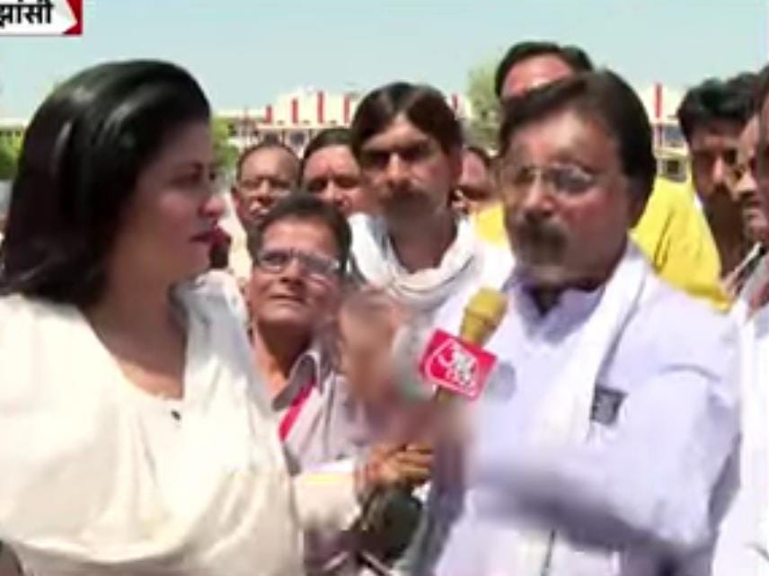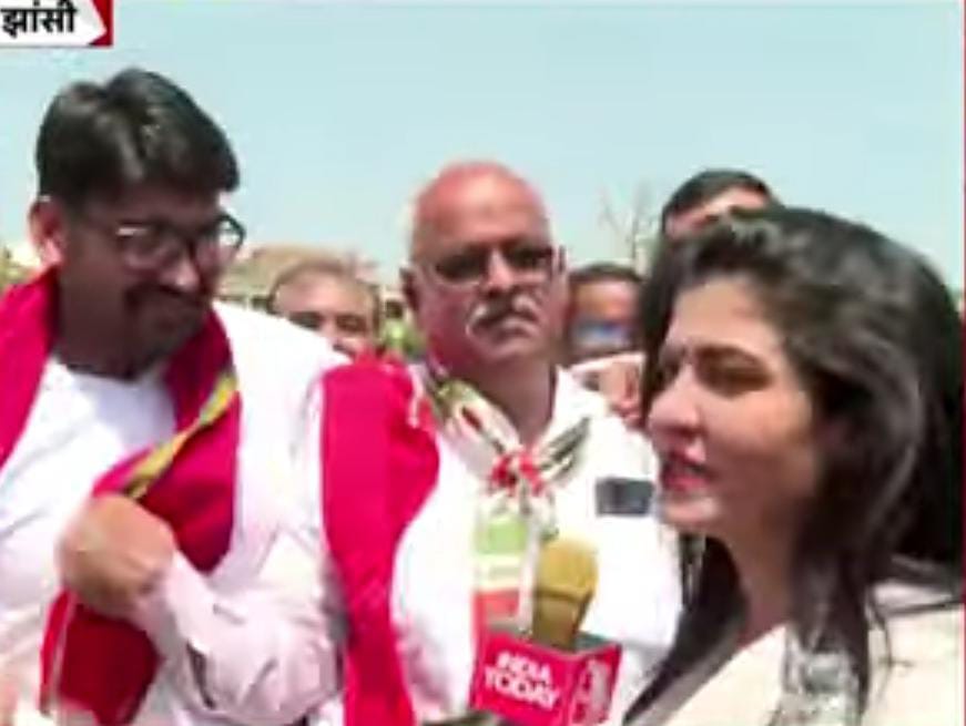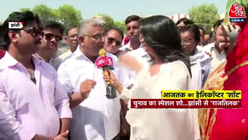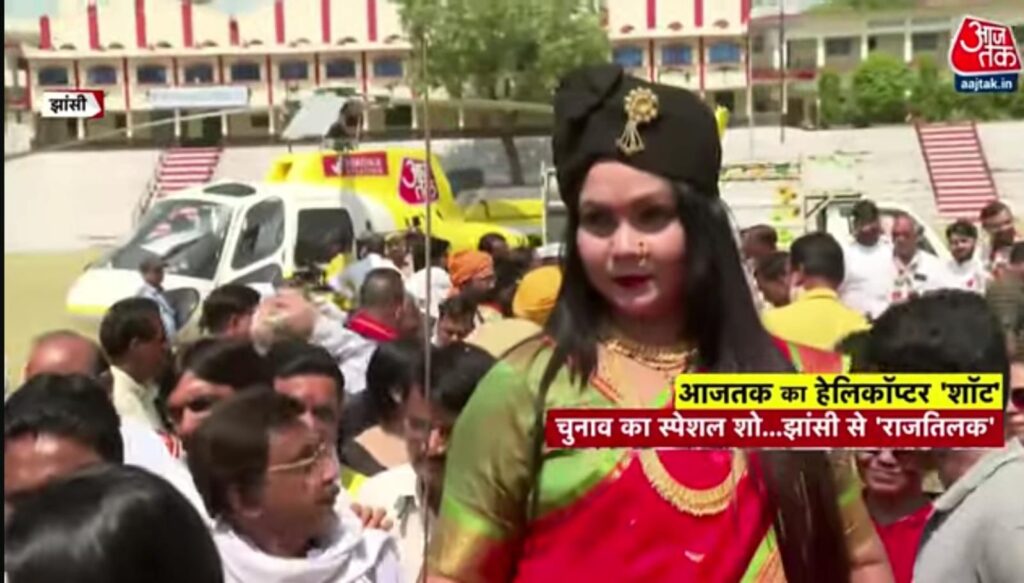 आजतक का चुनावी राजतिलक हेलीकॉप्टर उतरा झांसी में, चुनाव के स्पेशल शो में जनता की ली राय