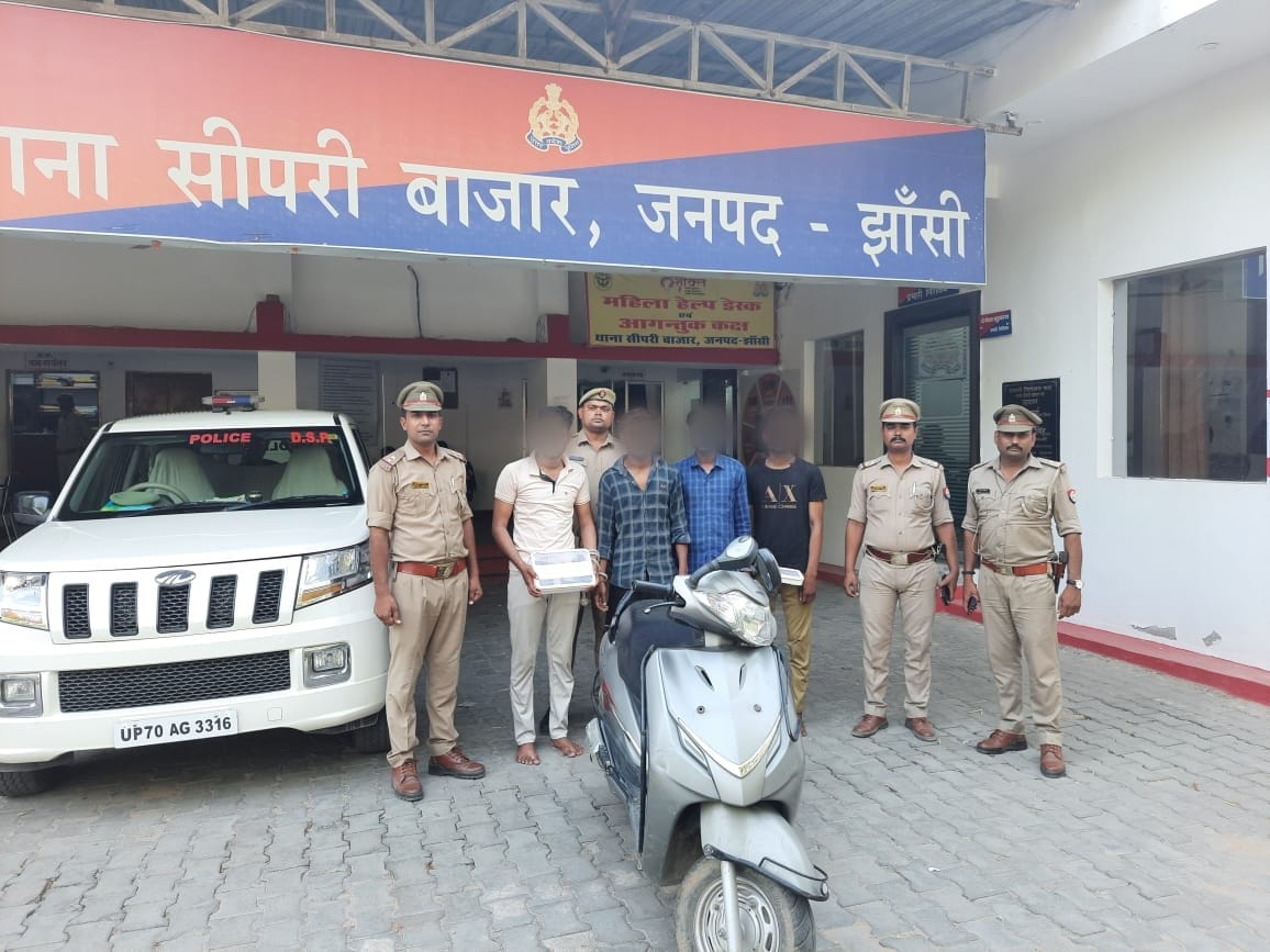झांसी। दिनदहाड़े छात्रा को तमंचा अड़ाकर मारपीट कर स्कूटी और मोबाइल फोन लूटकांड की घटना को अंजाम देने वाले शातिर अपराधियों को रक्सा, सर्व लांस, स्वाट और सीपरी थाना की पुलिस टीम ने गिरफ्तार कर चोबीस घंटे में लूटकांड की घटना का पर्दाफाश कर दिया है। जानकारी के मुताबिक कोतवाली थाना क्षेत्र के सूजे खां खिड़की मोहल्ला निवासी छात्रा ने सीपरी थाना में एक जून को रिपोर्ट दर्ज कराते हुए बताया था की वह अपनी स्कूटी से दोपहर करीब डेढ़ बजे कोलेज से घर की ओर जा रही थी। जैसे ही वह ग्राम भोजला रोड स्थित नहर के पास पहुंची तभी सुनसान इलाके में बाइक सहित खड़े चार युवकों ने उसे रोक लिया और उसकी मारपीट कर जमीन पर पटक कर उसकी स्कूटी और हाथ से मोबाइल फोन लूट कर भाग गए। दिनदहाड़े हुई इस गंभीर लूटकांड की घटना का सफल अनावरण के लिए एसएसपी शिवहरि मीना ने एसपी सिटी विवेक त्रिपाठी, सीओ सिटी के नेतृत्व में स्वाट, सर्व लांस और रक्सा, सीपरी थाना पुलिस को खुलासा करने के निर्देश दिए थे। एसएसपी के निर्देश पर पुलिस टीमों ने इन लुटेरों की सरगर्मी से तलाश शुरू कर दी थी। तभी पुलिस टीमों को सूचना मिली की चार संदिग्ध युवक ग्वालियर रोड स्थित पॉलिटेक्निक कॉलेज के मैदान में खड़े है। इस सूचना पर पुलिस टीमों ने मुखबिर द्वारा बताए गए स्थान पर पहुंच कर घेराबंदी कर चार युवकों को दबोच लिया। पुलिस ने उनके कब्जे से छात्रा से लूटी गई स्कूटी यूपी 93 बीबी 4927 ओर एक मोबाइल तथा घटना में प्रयुक्त तमंचा कारतूस सहित एक बाइक बरामद कर ली। पूछताछ में पकड़े गए युवकों ने अपने नाम ग्राम कोट निवासी अजय बरार, नबाब दोहरे, आकाश दोहरे और राजा यादव बताया। पूछताछ में चारों ने छात्रा के साथ की गई लूटकांड की घटना को स्वीकार किया। पुलिस ने चारों को जेल भेज दिया है।