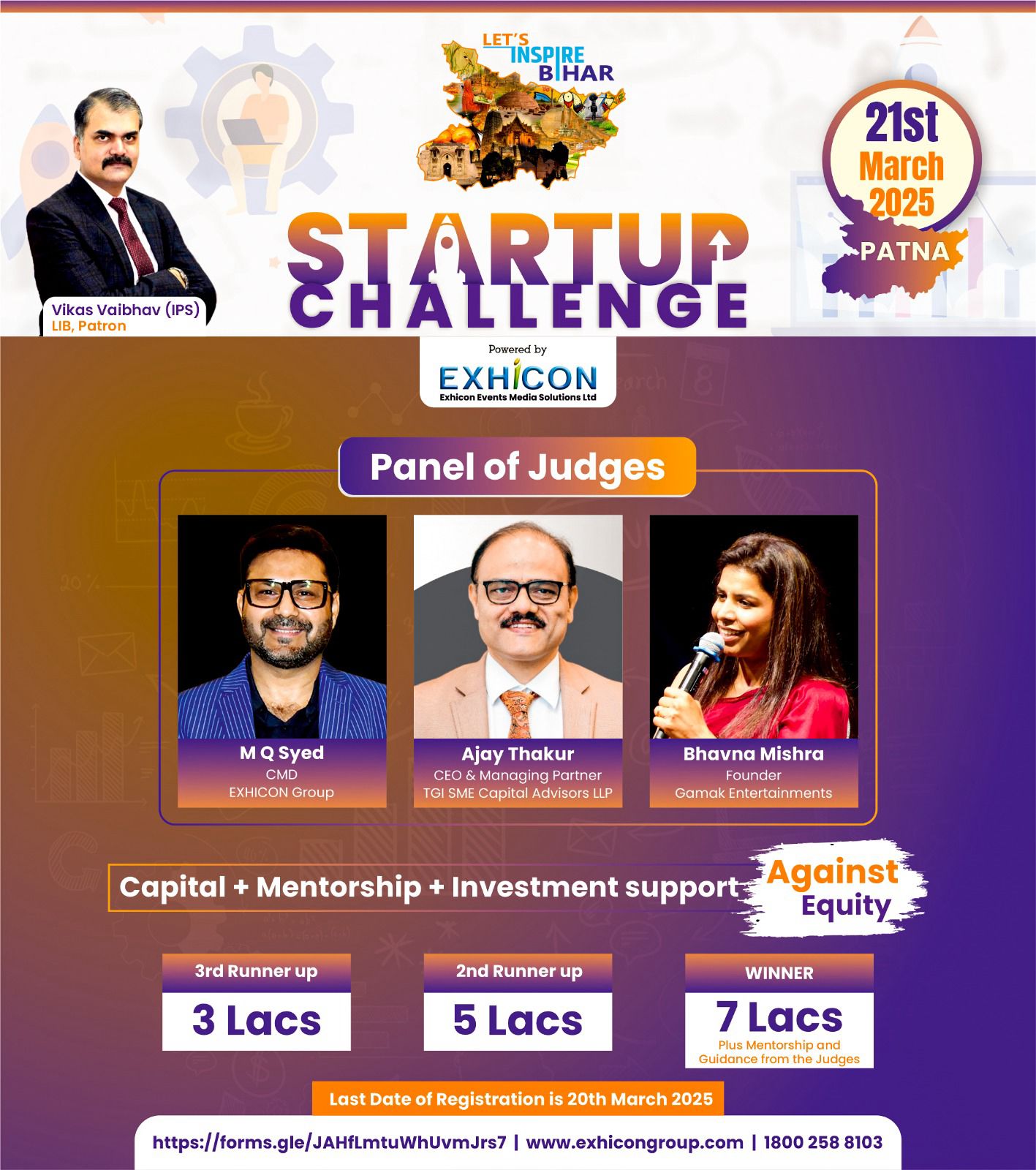 अजय ठाकुर, बीएसई एसएमई के जनक ! मेरे छोटे भाई एम क्यू सैयद , छोटे भाई और एक्ज़िकोन ग्रुप के फाउंडर, “लेट्स इन्स्पायर बिहार” में स्टार्टअप चैलेंज को जज करेंगे, साथ में होंगी भावना मिश्रा