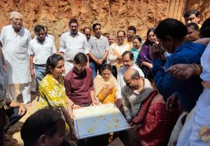 झाँसी। महानगर के मेडिकल कॉलेज गेट नं 3 से आगे निर्माणाधीन भगवान महावीर महातीर्थ में विजयादशमी के शुभ अवसर पर मुनिश्री अविचलसागरजी महाराज के मंगल सान्निध्य में भगवान महावीर की 31 फुट ऊंची एवं 70 टन बजनी विशाल एवं मनोज्ञ खड्गासन प्रतिमा के लिए वेदी शिलान्यास एवं मंगल भूमिपूजन भव्यतापूर्वक सम्पन्न हुआ। इस अवसर पर पण्डित प्रदीप जैन शास्त्री ललितपुर के निर्देशन में वास्तु विधान किया गया। इस अवसर पर भूमि में मुख्य शिला एवं प्रशस्ति स्थापित करने का सौभाग्य डॉ ममता – डॉ मुकेश जैन नजा, डॉ आकांश जैन, डॉ आयुषी जैन, डॉ आयुष जैन एवं श्रीमति रिनी-पारस जैन (यूएसए) को प्राप्त हुआ। अचल यंत्र श्रीमति सरोज – शैलेन्द्र जैन, विकास जैन प्रेस एवं वास्तु यंत्र जिनेन्द्र जैन गुरसरांय ने स्थापित किया। रजत गैंती से श्रीमति मधु – नीलेश मोदी, रजत फावड़ा से श्रीमति मेघा – प्रदीप जैन महरौनी, रजत कन्नी से श्रीमति दीप्ति – नरेश जैन मल्लन, रजत गुनिया से श्रीमति निशि – महेन्द्र जैन रेल्वे, रजत गुनिया एवं ताम्र बाण से श्रीमति शीला सिंघई, सरिता – महेन्द्र सिंघई, सारिका – संजय सिंघई, अंजलि – डॉ राजीव जैन, गुणमाला से डॉ अभय जैन ने खनन एवं निर्माण की मांगलिक क्रियाएं सम्पन्न करने का सौभाग्य प्राप्त किया। श्रीमति पदमा – विजय कासलीवाल, गरिमा – रॉबिन जैन सदर, श्रीमति आशा – अशोक जैन रतनसेल्स, शांतकुमार जैन चैनू को पंचपरमेष्ठि सूचक शिला को स्थापित करने का सौभाग्य मिला। रमेश जैन, श्रीमति निधि – सौरभ जैन बिजली ने मंगल कलश स्थापना एवं श्रीमति शकुन – रवि जैन ने पारा, राजुल जैन नीरज जैन पंकज रेडियो, सुमन जैन, स्नेहा जैन, दिलीप जैन ने पिरामिड स्थापित किए। डॉ राखी जैन, आलोक जैन, डॉ यश जैन ने दीप प्रज्वलन कर स्थापित किया। श्रीमति आयुषी – डॉ अर्पित जैन, सविता जैन, इंदु जैन, पिंकी – विपिन ओम बिजली, आशा – डॉ जिनेन्द्र जैन, डॉ जयेश हैं, जुगनू जैन, सपना – सुकमाल जैन, दीपमाला जैन, आशा – अनिल जैन, ज्योति जैन ने स्वर्ण एवं रजत शिलाएं स्थापित करने का सौभाग्य प्राप्त किया। दिलीप जैन चिरगांव, प्रीति जैन, राजकुमारी जैन ने रजत सिक्का एवं प्रभात जैन कुंजबिहारी ने स्वर्ण कलश स्थापित किया। ऊषा जैन, चिराग जैन बरुआसागर, अर्चना – विशाल जैन नयाखेड़ा ने पंचरत्न मंगल सामग्री समर्पित करने का सौभाग्य प्राप्त किया।