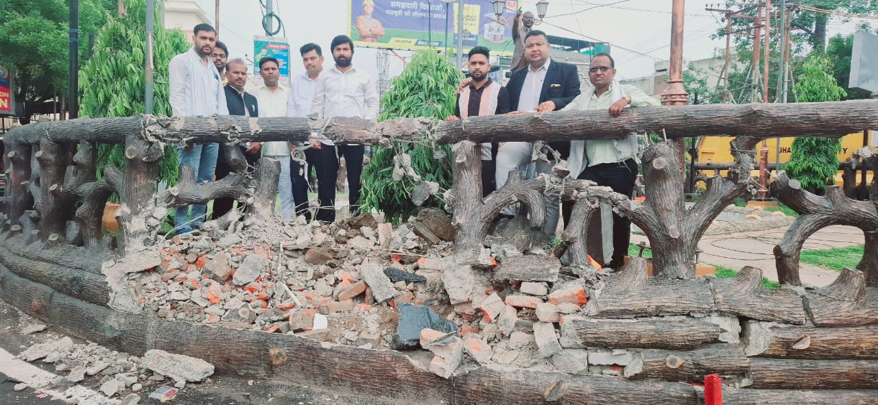 झांसी। देर रात अज्ञात वाहन ने टक्कर मारते हुए अम्बेडकर चौराहे प्रतिमा के चौराहे को तोड़ दिया। जिससे अम्बेडकर साहब को मानने वाले लोगों ने भारी आक्रोश व्याप्त है। शुक्रवार को बहुजन समाज पार्टी के तत्वावधान में बसपाइयों ने नगर आयुक्त को ज्ञापन सौंपते हुए बताया कि अज्ञात वाहन चालक द्वारा कचहरी चौराहे पर लगी बाबा साहब डॉक्टर भीमराव अंबेडकर की प्रतिमा के चौराहे को तोड़ दिया है। इस घटना से हम सभी बाबा साहब के अनुयायियों में आक्रोश है। उन्होंने ज्ञापन के माध्यम से मांग करते हुए कहा कि चौराहे को क्षतिग्रस्त करने वाले वाहन चालक के खिलाफ मुकदमा दर्ज कराकर चौराहे का निर्माण कार्य कराया जाए। साथ ही बाबा साहब की प्रतिमा का जीर्णोद्वार कराया जाए। इस दौरान रवि कांत मौर्य, संतोष आदि उपस्थित रहे।