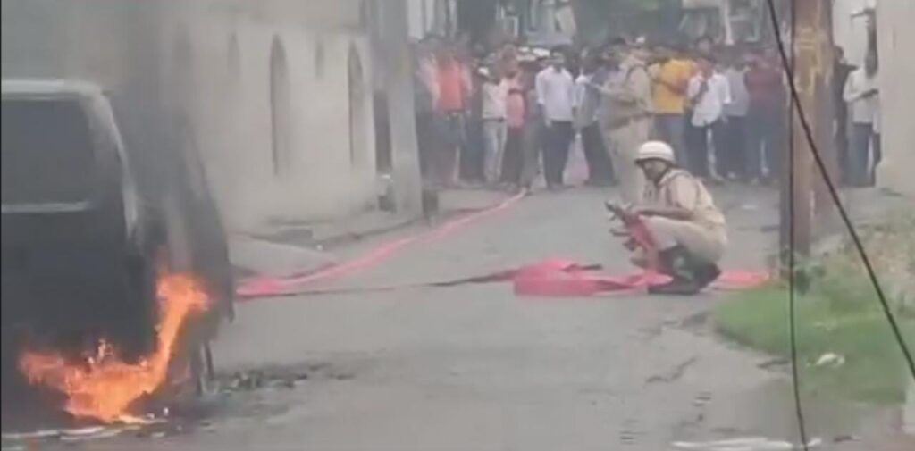 एंबुलेंस में लगी आग, गैस रिफलिंग के दौरान हुआ हादसा मचा हड़कंप, आरटीओ और यातायात की कार्यवाही पर उठे सवाल