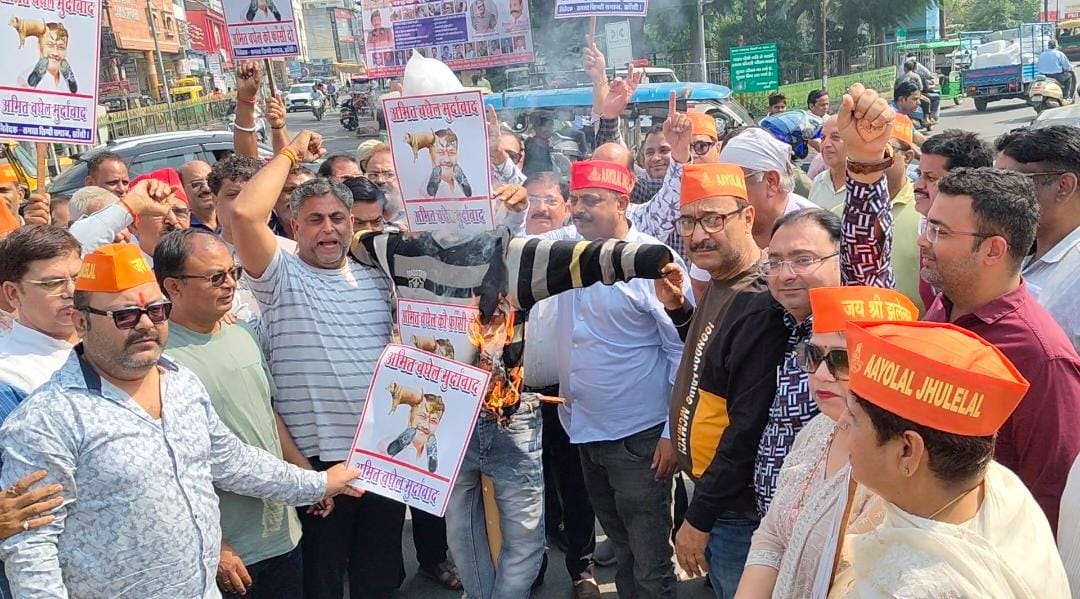 अभद्र टिप्पणी पर सिंधी समाज में आक्रोश, अमित बघेल का पुतला जलाया