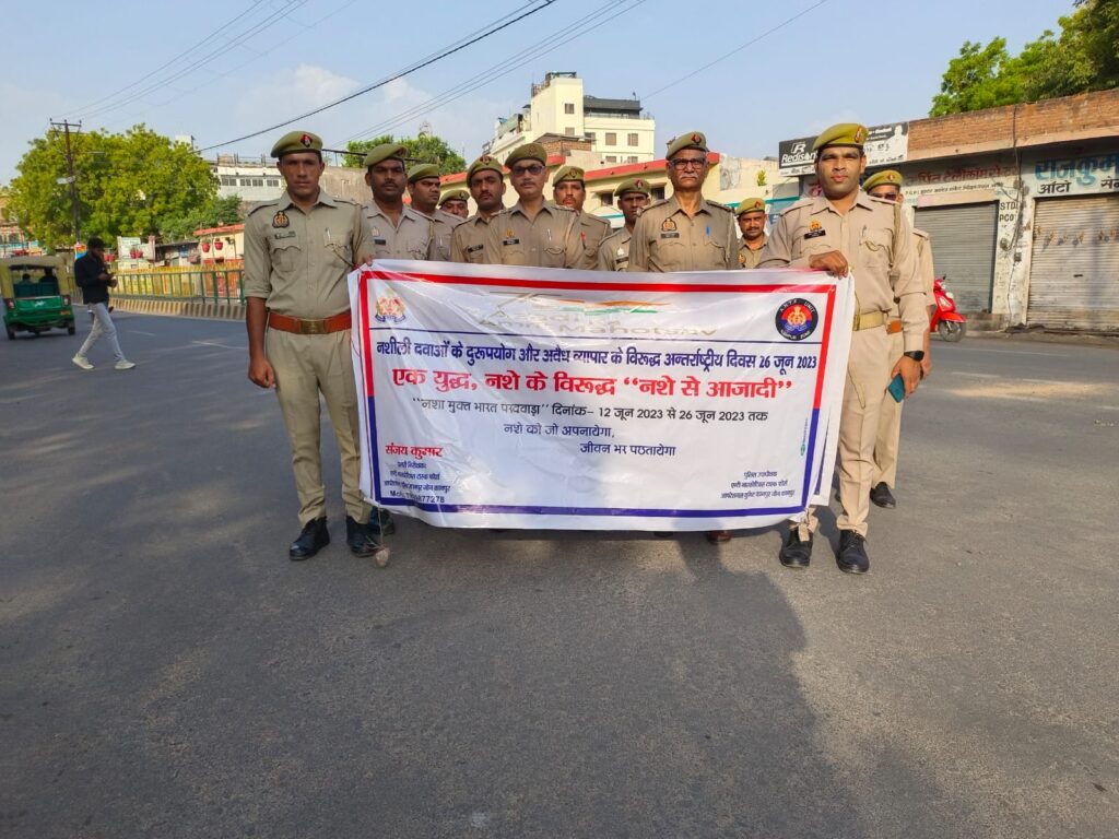 झांसी। उत्तर प्रदेश सरकार द्वारा चलाए जा रहे अभियान एक युद्ध नशे के विरुद्ध के चलते एंटी नारकोटिक्स थाना पुलिस ने जन जागरूकता अभियान चलाकर लोगों को जागरूक करते हुए रैली निकाली।गुरुवार को एंटी नारकोटिक्स थाना प्रभारी संजय के नेतृत्व में थाना पुलिस ने प्रदेश सरकार द्वारा चलाए जा रहे 12 जून से 26 तक एक युद्ध नशे के विरुद्ध अभियान नशे से आज़ादी के अभियान के तहत रैली निकाल कर नशे से आज़ादी के लिए जागरूक करते हुए आम जन और युवा पीढ़ियों से नशा न करने की अपील की। रैली का शुभारंभ एंटी नारकोटिक्स थाना से होकर रानी लक्ष्मी बाई पर समाप्त हुई। यहां सभी लोगों को नशे के विरुद्ध पुलिस ने जागरूक करते हुए नशा न करने की अपील की।