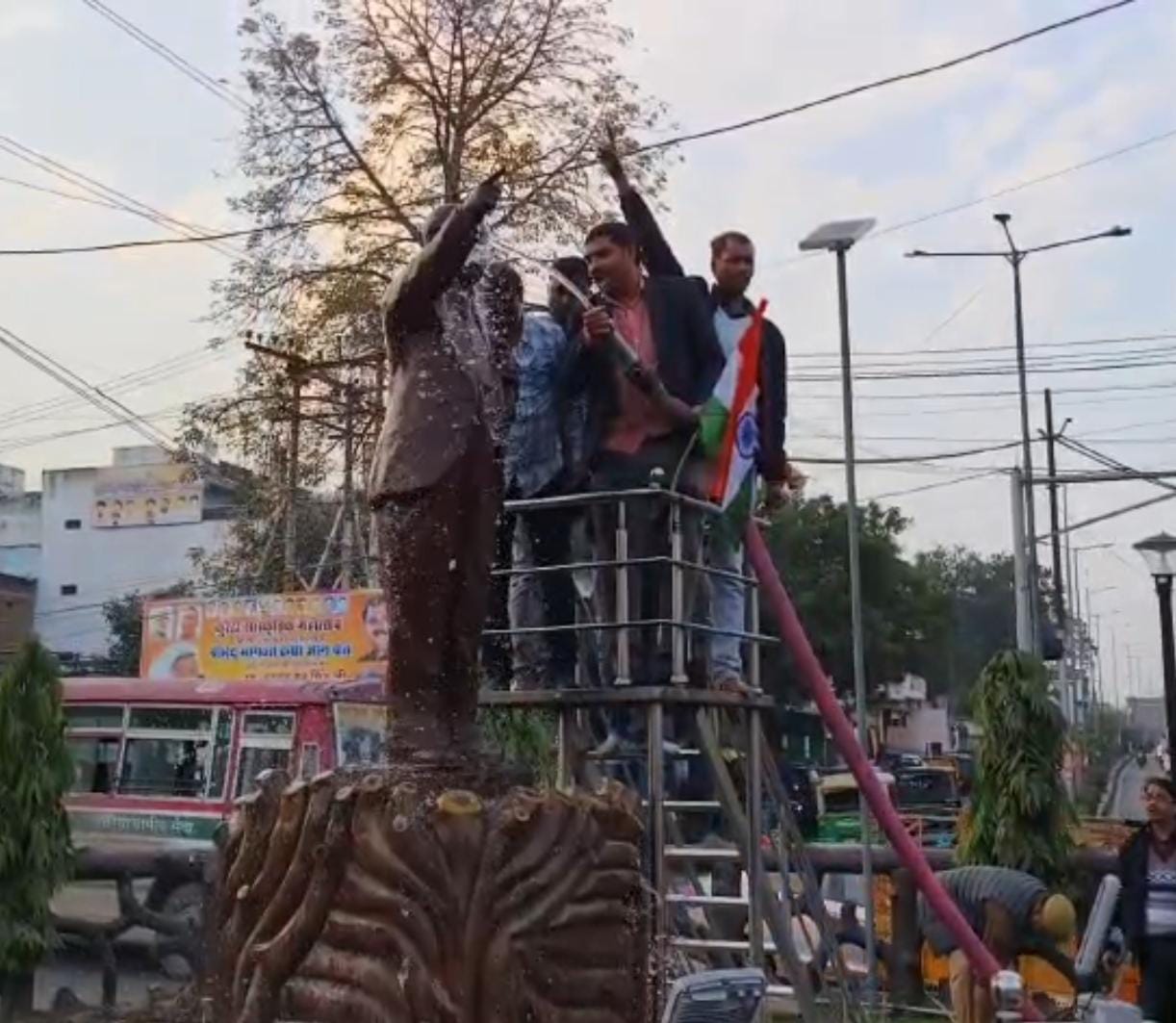 झांसी। किसी असमाजिक तत्व ने महापुरुष की प्रतिमा से छेड़छाड़ कर माहौल खराब करने का प्रयास किया गया। प्रतिमा पर सब्जी फैंकने की खबर पाकर मौके पर पहुंचे बसपा कार्यकर्ताओं ने अक्रोस व्यक्त करते हुए पुलिस को सूचना दी। जिसकी सूचना मिलने पर मौके पर पहुंची पुलिस ने तत्काल शांति का माहौल कायम करते हुए प्रतिमा को धुलवा कर असमाजिक तत्व के खिलाफ कार्यवाही करने का भरोसा दिलाया।जानकारी के मुताबिक कचहरी चौराहे पर संविधान के निर्माता डॉक्टर भीम राव अंबेडकर बाबा साहब की प्रतिमा लगी हुई है। इसी प्रतिमा के चारों ओर शहर के अंदर और बाहर जाने वालों पर नजर रखने के लिए हाई सिक्योरिटी सुरक्षा कैमरे लगे हुए है। इसके बावजूद भी कोई असमाजिक तत्व शहर का शांतिप्रिय माहौल खराब करने के उद्देश्य से बाबा साहब की प्रतिमा से छेड़छाड़ करते हुए सब्जी फैंक दी और उनका चश्मा गायब कर दिया। इसकी सूचना पर बसपा के कार्यकर्ता मौके पर पहुंचे और अक्रोश व्यक्त करते हुए पुलिस को सूचना दी। सूचना पर पहुंची नवाबाद पुलिस ने त्वरित कार्यवाही करते हुए प्रतिमा को पानी से साफ कराकर माहौल शांत कराया। इधर असमाजिक तत्व के खिलाफ कार्यवाही और उसकी गिरफ्तारी की मांग कर रहे लोगों को शांत करते हुए पुलिस ने उसकी गिरफ्तारी और कार्यवाही करने का भरोसा दिया।