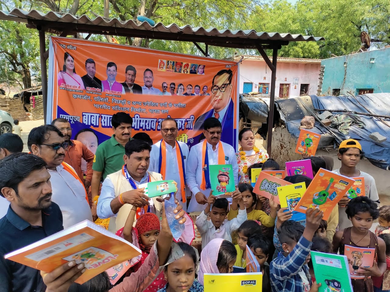 अपना दल एस ने बच्चों साथ मनाई बाबा साहेब की जयंती