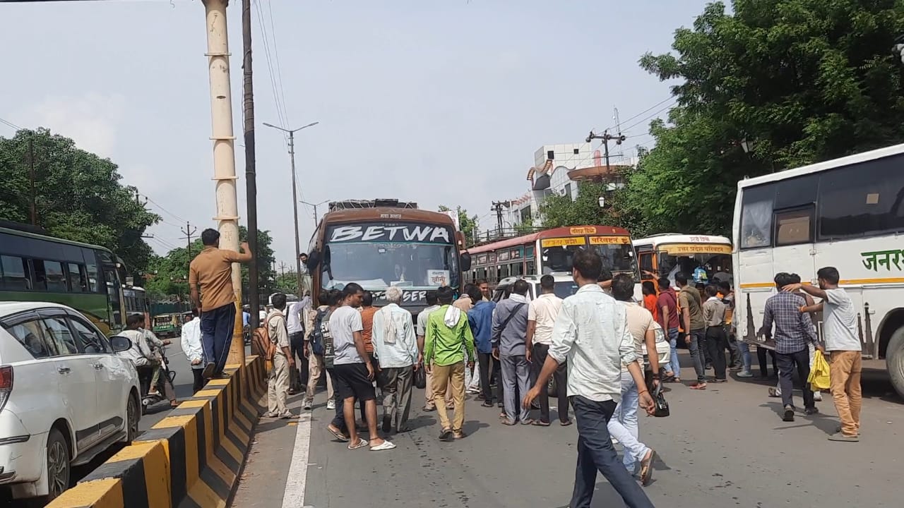 रोडवेज कर्मचारी को पीटने पर बबाल, बस कर्मचारियों ने लगाया जाम