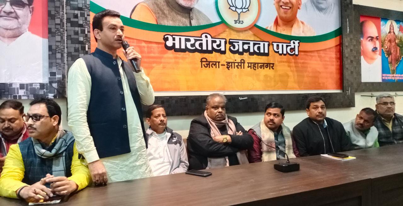 झांसी। वित्त विहीन शिक्षक संघ के नेता अशोक राठौर भारतीय जनता पार्टी में शामिल हुए। यह शिक्षक विधायक चुनाव को लेकर बड़ी खबर है, साथ ही भाजपा प्रत्याशी बाबू लाल तिवारी की जीत की राह भी आसान होगी।गुरुवार को भाजपा कार्यालय में आयोजित पत्रकार वार्ता में भाजपा के क्षेत्रीय अध्यक्ष मानवेंद्र सिंह ने बताया की शिक्षक संघ के नेता अशोक राठौर अपने साथ बीएल भास्कर, तुलसी राम, धर्मेंद्र सिंह, विवेक खरे, राजू कुशवाह, मनीष, विवेक प्रताप सिंह आदि दर्जनों शिक्षक संघ के पदाधिकारियों के साथ भाजपा में शामिल हुए। इस दौरान क्षेत्रीय अध्यक्ष ने कहा की बाबू लाल तिवारी भारी बहुमत से विजय होंगे। अशोक राठौर ने कहा की शिक्षकों के सम्मान में 2016 की परीक्षा में स्कूल प्रधानचार केंद्र व्यवस्थापक होंगे, उन्होंने कहा की वह एक जगह से धोखा खा चुके है। इसलिए पार्टी में निष्ठा रखी थी। फिर पार्टी पदाधिकारियों से चर्चा होने ओर शिक्षकों का सम्मान बरकरार रखने का आश्वाशन पर भाजपा की सदस्यता ली। इस दौरान भाजपा के प्रदेश मंत्री/ चुनाव प्रभारी संजय राय ने कहा की प्रदेश सरकार शिक्षकों को लेकर काफी गंभीर है, उनकी समस्याओं के निस्तारण के लिए लगातार प्रयासरत है। पुरानी पेंशन बहाली को लेकर योजना तैयार हो रही है। भाजपा ने शिक्षकों का अंश नही काटा आज तक। अखिलेश सरकार में गुंडई थी। लेकिन अब योगी सरकार ने शिक्षकों का सम्मान रखा है, नकल विहीन परीक्षा हो रही है। बबीना विधायक राजीव सिंह, महानगर अध्यक्ष मुकेश मिश्रा, जिलाध्यक्ष जमुना प्रसाद कुशवाह, भाजपा नेता संजीव श्रंगृषि, प्रदीप सरावगी, देवेंद्र दुबे, ओम बिहारी भार्गव, आदि मौजूद रहे।