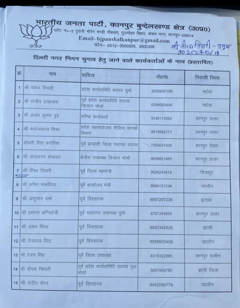 झांसी। भारतीय जनता पार्टी युवा मोर्चा के निवर्तमान प्रदेश कार्यसमिति सदस्य दीपक त्रिपाठी को दिल्ली मे होने वाले एम सी डी चुनाव मे भारतीय जनता पार्टी प्रदेश नेतृत्व द्वारा महत्वपूर्ण जिम्मेदारी दी गयी है। दिल्ली एम सी डी चुनाव भारतीय जनता पार्टी के लिये काफी महत्वपूर्ण चुनाव है क्योकि दिल्ली मे आम आदमी पार्टी के सरकार है ओर भाजपा आम आदमी पार्टी मे सीधी टक्कर है। दीपक त्रिपाठी इससे पहले भी मध्यप्रदेश पश्चिम बंगाल हरियाणा महाराष्ट्र हिमाचल प्रदेश असम उत्तराखंड दिल्ली राजस्थान मे पार्टी के लिये पूर्ण कालिक के रूप मे काम कर चुके हैं।