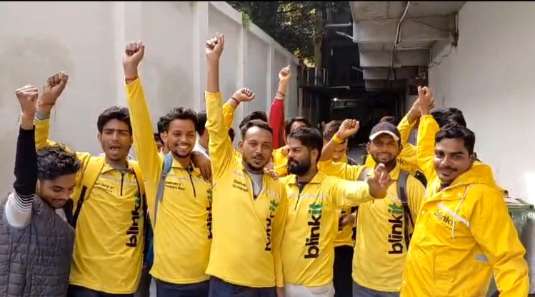 मानदेय में कटौती करने पर ब्लिंकिट के डिलेवरी बॉय प्रदर्शन पर उतारू