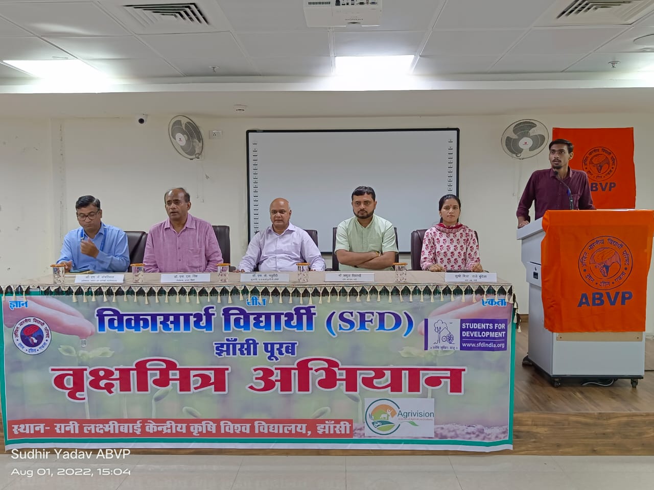 झांसी। अखिल भारतीय विद्यार्थी परिषद द्वारा चलाया जा रहा देश व्यापी वृक्षमित्र अभियान झांसी पूरब जिले की रानी लक्ष्मीबाई केंद्रीय कृषि विश्वविद्यालय में संपन्न हुए जिसमे मुख्य अथिति के रूप में विश्वविद्यालय के कुलपति बी डॉ सुशील चतुर्वेदी जी एवम मुख्य वक्ता के रूप कानपुर प्रांत के प्रांत संगठन मंत्री अंशुल विद्यार्थी जी की उपस्थिति रही जिन्होंने छात्र छात्राओं को संबोधित करते हुए कहा विद्यार्थी पर्यावरण को लेके सजग रहें और आज के समय को देखते हुए वृक्ष लगाना एवम उसका संरक्षण करना अति आवश्यक है ना सिर्फ विद्यार्थी वृक्ष लगाए अपितु उसका मित्र बनकर संरक्षण करे।कुलपति जी ने छात्रों को संबोधित करते हुए कहा विद्यार्थी परिषद के द्वारा चलाया जा रहा यह वृक्षमित्र अभियान देश समाज के लिए प्रेरणा दायक है एवम विद्यार्थी इस कार्यक्रम में बड़ कर हिस्सा लें एवम पर्यावरण को बचाने का हिस्सा बने एवम विद्यार्थी परिषद ऐसे देश व्यापी अभियान करके समाज एवम विद्यार्थियों के बीच हमेशा राष्ट्र भावना जागृत करता है।कार्यक्रम के उपरांत विश्व विद्यालय कैंपस में छात्र छात्राओं के द्वारा 1100 वृक्ष रोपित किए।कार्यक्रम में मुख्य रूप से डॉ मनमोहन डोबरियाल(डीन हॉर्टिकल्चर), डॉ एस एस सिंह जी(निदेशक प्रसार शिक्षा), शिवा राजे बुंदेला प्रांत सह मंत्री ने समस्त छात्र छात्राओं का आभार प्रकट किया।एवम कार्यक्रम में डॉ गौरव शर्मा जी ,डॉ आशुतोष शर्मा जी ,डॉ ऐ के गुप्ता जी, डॉ देवेश तिवारी जी,विभाग संगठन मंत्री आकाश कुशवाहा, प्रांत सह मंत्री उदय राजपूत,प्रांत सह संयोजक राष्ट्रीय कला मंच रश्मि कुशवाहा, पूरब जिला संयोजक सुष्मिता सिंह उपस्थित रही कार्यक्रम का संचालन प्रांत कार्यसमिति सदस्य सिद्धांत मिश्रा जी ने किया।
