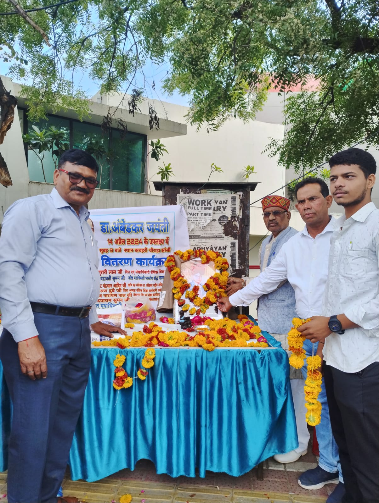 झाँसी। डॉक्टर अम्बेडकर चौराहा,कचहरी झांसी पर इंजीनियर मोहन लाल सिंगरया-ऐडवोकेट एंव प्रदेश अध्यक्ष-अखिल भारतीय कोरी/कोली महासभा उ.प्र एंव समाज सेवी के नेतृत्व में बाबासाहब डॉक्टर भीमराव अंबेडकर जी की 133 वीं जयंती के सुअवसर पर डॉक्टर अम्बेडकर जी की प्रतिमा पर माल्यार्पण कर सभी सम्मानित उपस्थित जन समूह को बहुत बहुत बधाई एंव शुभ कामनायें दीं। तथा अपने उद्बोधन में इंजीनियर मोहन लाल सिंगरया-ऐडवोकेट ने बोलते हुए बताया कि बाबासाहब डॉक्टर भीमराव अंबेडकर जी संविधान निर्माता, भारत रत्न, विश्व विधाता, नारियों के मुक्ती दाता, सिम्बल आफ नोलेज,सभी समाज के मसीहा थे। जिन्होंने संविधान की रचना कर शिक्षा के माध्यम से आगे बढ़ने की प्रेरणा दी। तथा वोट का अधिकार देकर हम सब को आगे बढ़ने की राह दिखाई। आज इस अवसर पर एस सी / एस टी टीचर्स वेल्फेयर ऐसोशियन ने मुझे बिशिषट अतिथि के रूप में बाबासाहब डॉक्टर भीमराव अंबेडकर जी का चित्र एंव शाल उड़ाकर सम्मानित किया। इस अवसर पर प्रदेश अध्यक्ष दिनेश बिदोही, राजेंद्र कुमार वर्मा, रवि कांत वर्मा, घनश्याम दास, घनश्याम कोरी,जगदीश लाल मूर्तिकार, हेमंत कुमार, मनोज कुमार, ऊषा गौतम, चन्द्र भान आदिम, दीपक कुमार, ओमप्रकाश, हरचरन लाल बौद्ध, आर सी वर्मा अजमेर, आर जी वर्मा, जी डी कौशल,अमित चंचल,दलजीत पाठ्या, देवेंद्र नारौलिया, विनोद माहौर आदि के अलावा तमाम समाज सेवी एंव अन्य प्रतिष्ठित लोग उपस्थित रहे। तथा आज इस कार्यक्रम में 100 किलो मिठाई का वितरण भी किया गया।