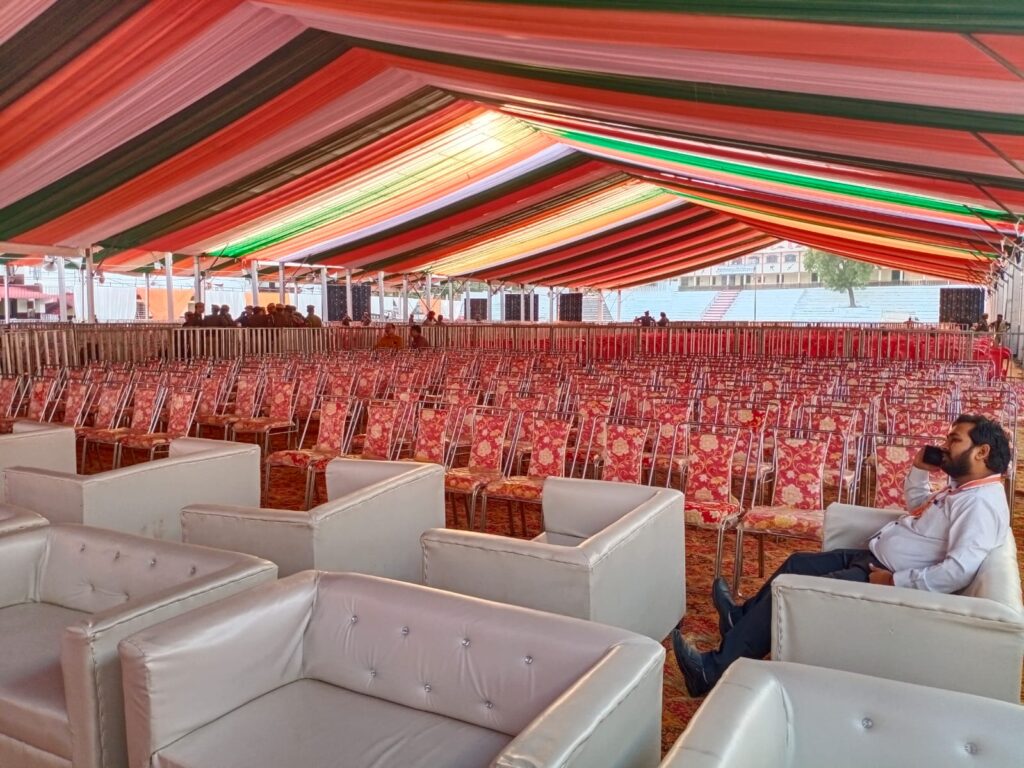 झांसी। गुरुवार को होने वाले प्रबुद्ध सम्मेलन में भाग लेने झांसी आ रहे प्रदेश के मुखिया सीएम योगी आदित्यनाथ करोड़ो की विकास योजनाओं का शिलान्यास लोकार्पण करेंगे। सीएम आगमन को लेकर सुरक्षा व्यवस्था पूरी तरह से मुस्तैद कर दी गई है। वही एडीजी कानपुर जोन ने जनपद में डेरा डाल लिया और उन्होंने कार्यक्रम स्थल का निरीक्षण कर सुरक्षा व्यवस्था देखते हुए तैनात अफसरों को दिशा निर्देश दिए।गुरुवार को झांसी के लक्ष्मी व्यायाम शाला मंदिर स्कूल में आयोजित प्रबुद्ध सम्मेलन में भाग लेने आ रहे प्रदेश के मुखिया योगी आदित्यनाथ के आगमन की जिला प्रशासन और पुलिस ने पूर्ण तायरिया कर ली है। सीएम योगी स्कूल में बने मंच से 327 करोड़ की विकास कार्य योजनाओं परियोजनाओं का शिलान्यास लोकार्पण करेंगे। सीएम योगी का हैलीकॉप्टर दस बजकर पचास मिनट पर झांसी पुलिस लाइन ग्राउंड में उतरेगा। इसके बाद पुलिस लाइन से कार द्वारा 11 बजे लक्ष्मी व्यायाम शाला मंदिर स्कूल मंच पर पहुंच कर सम्मेलन तथा योजना प्रोयोजनाओं का शिलान्यास करेंगे। इसके बाद 12.35 पर कार्यक्रम समाप्त के बाद वह पुलिस लाइन ग्राउंड पहुंच कर हेलीकॉप्टर से प्रयागराज जायेंगे। सीएम योगी के आगमन को लेकर पुलिस लाइन से स्कूल तक सारी सड़के और दीवारों को रंग दिया गया है। वही सीएम की सुरक्षा में कई जिलों का भारी पुलिस बल तैनात किया गया है। आज एडीजी कानपुर जोन भानु भास्कर झांसी पहुंचे यहां उन्होंने डीआईजी, एसएसपी के साथ कार्यक्रम स्थल पर सुरक्षा व्यवस्था देखी और तैनात पुलिस बल को दिशा निर्देश दिए।