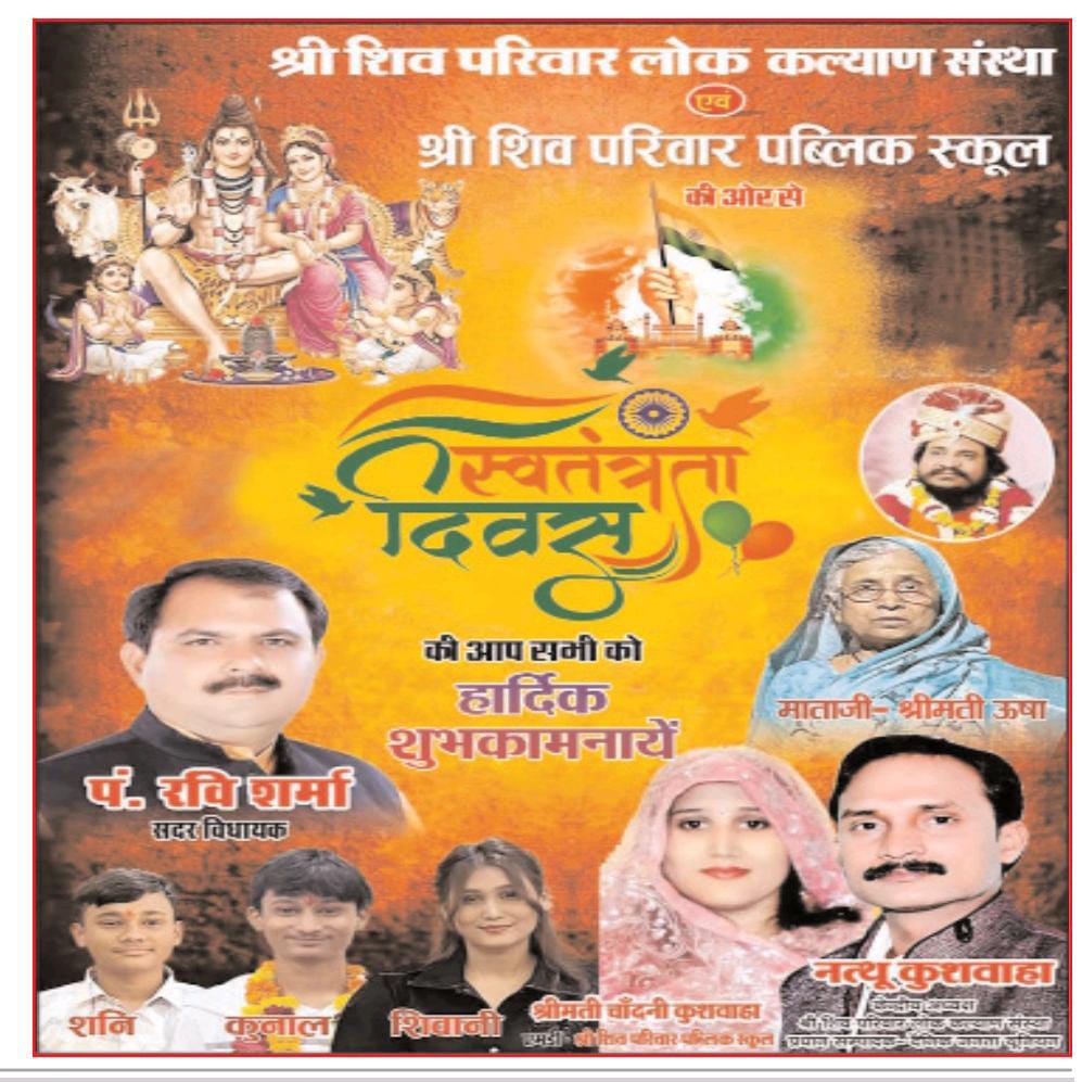 15 अगस्त स्वतंत्रता दीवार के अवसर पर वक्ताओं में मौजूद तरुण दुबे स्मृति खरे अब्दुल रहीम सिद्दीकी सुनील दुबे अनीश खान नवीन प्रकाश दुबे पूर्व डीसी अनुज कुमार, डीसी वैशाली, डीसी प्रीति, डीसी सरोज सेंगर,अजय राय, सुमित कुमार, देवेंद्र कुमार, सौरभ राय, रमेश चंद्र डीसी, ने अपने-अपने वक्ताओं में समस्त देशवासियों को संदेश दिया शुभकामनाएं दी। इस अवसर पर रमेश चक्रवर्ती, दीपक,वर्मा राजेंद्र, सिंह लेखाकार, अरविंद कुमार साहू, मधुर प्रकाश,संतोष यादव, कमरुद्दीन खान,विजय कुमार, सुखलाल, वृंदावन,योगेंद्र कुमार,शिवम कुमार, विवेक शर्मा, अजय शर्मा आदि उपस्थित रहे। 15 अगस्त का कार्यक्रम का समापन स्काउट गाइड के सुनील कुमार द्विवेदी एवं अनीश खान ने किया।