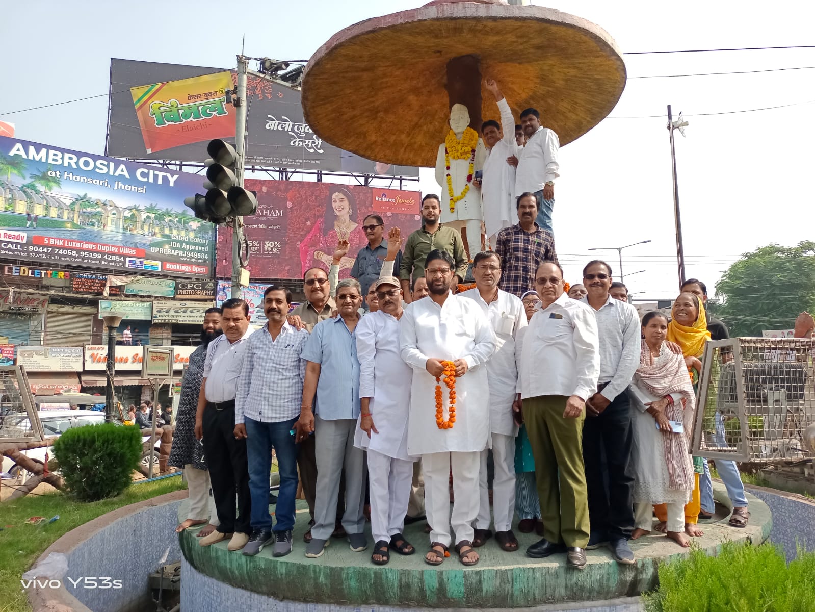 झांसी। भारत के पहले प्रधान मंत्री/बच्चों के चाचा पंडित जवाहर लाल नेहरू की जयंती पर पूरा देश उन्हें श्रद्धांजलि देते हुए नमन कर रहा है। वही जनपद झांसी के महानगर के प्रमुख चौराहे इलाईट पर लगी पंडित जवाहर लाल नेहरू की प्रतिमा जिसका रख रखाव की जिम्मेदारी नगर निगम की है। आज उनकी जयंती होने पर भी नगर निगम की उदासीनता दिखाई दी। प्रतिमा पर चढ़ी धूल मिट्टी तक नगर निगम ने साफ नहीं नहीं कराई। सुबह कांग्रेस पार्टी के नेतृत्व में पहुंचे पूर्व केंद्रीय ग्रामीण विकास राज्य मंत्री प्रदीप जैन आदित्य सहित कांग्रेसियों ने नगर निगम की उदासीनता के खिलाफ आक्रोश व्यक्त किया। उन्होंने बाजार से बिसलेरी की बोतलों को मंगवा कर प्रतिमा को धो कर धूल मिट्टी साफ की। इसके बाद सभी ने प्रतिमा पर माल्यार्पण कर नेहरू उन्हें श्रद्धांजलि देते हुए उनके द्वारा प्रधानमंत्री पद पर रहकर देश के लिए किए गए कार्यों की सराहना की। इस दौरान दर्जनों कांग्रेसी उपस्थित रहे।