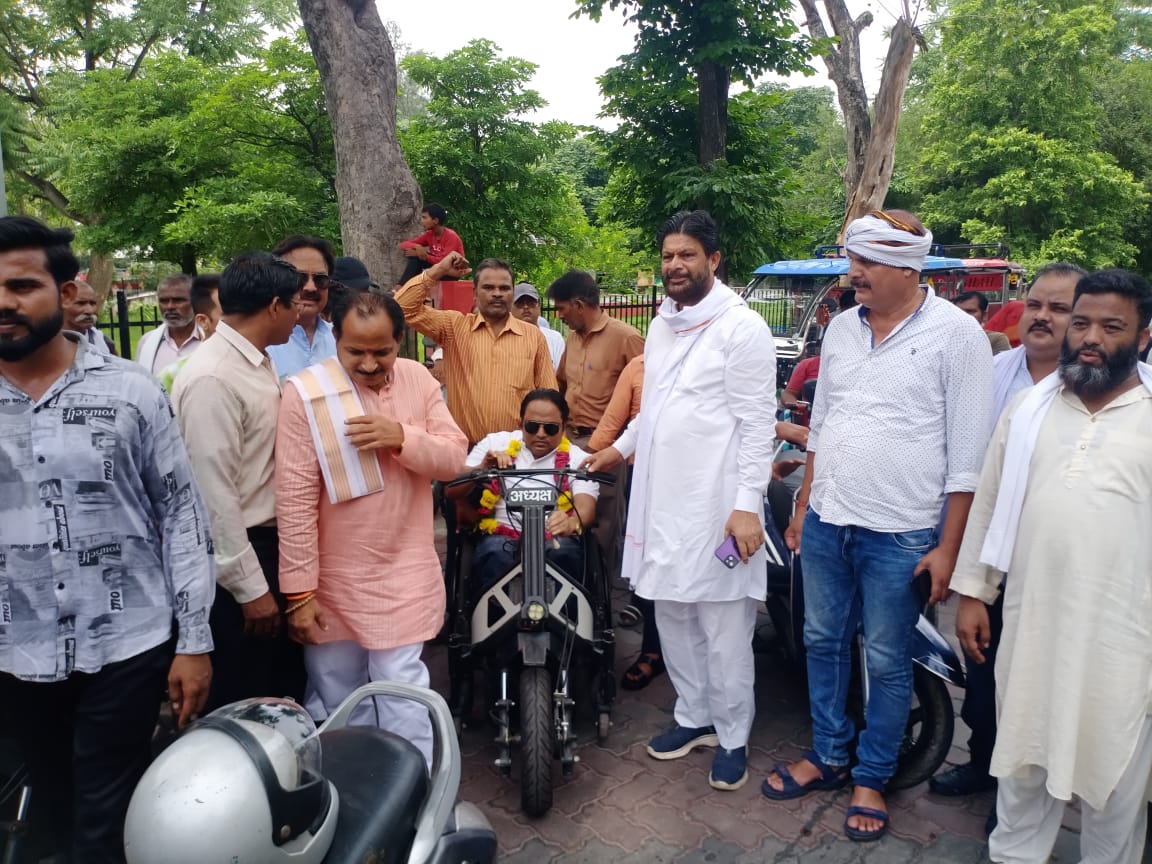 झांसी। दिव्यांगों से डीआरएम कार्यालय में लिपिक द्वारा अभद्र व्यवहार पर कांग्रेसियों ने डीआरएम कार्यालय का घेराव करते हुए कार्यवाही की मांग की है।बुधवार को पूर्व केंद्रीय मंत्री प्रदीप जैन आदित्य के नेतृत्व में कांग्रेसियों ने डीआरएम कार्यालय का घेराव करते हुए डीआरएम से वार्ता की। इस दौरान उन्होंने ज्ञापन देते हुए कहा कि बुंदेलखंड दिव्यांग कल्याण समिति पिछले 25 वर्षो से दिव्यांगो के लिए कार्य कर रही है। यह समिति पिछले दस वर्षो से उपयोग कर्ता परामर्श कर्ता समिति की सदस्य है। झांसी मंडल झांसी रेल विभाग दिव्यांग के लिए रेल रियायत प्रमाण पत्र जारी करती है। लेकिन कुछ समय से डीआरएम कार्यालय में तैनात एक लिपिक द्वारा दिव्यांग को रियायत प्रमाण पत्र जारी करने में नए नए कानून बनाकर दिव्यांगों का उत्पीड़न कर रहा है। अभद्र व्यवहार कर दिव्यांगों को भगाया जाता है। कई बार शिकायत के बाद भी कार्यवाही नही हुई। लिपिक दिव्यांग को रियायत प्रमाण पत्र जारी करने के नाम पर नए नए कानून नियम मंगवा कर उत्पीड़न कर रहा है। उन्होंने डीआरएम से लिपिक के खिलाफ कार्यवाही की मांग करते हुए दिव्यांगों को रेल रियायत पास जारी करने की मांग की है। इस दौरान दिव्यांग समिति के अध्यक्ष मोहम्मद उमर, मनीराम कुशवाह, सहित दर्जनों कांग्रेसी और दिव्यांग उपस्थित रहे।