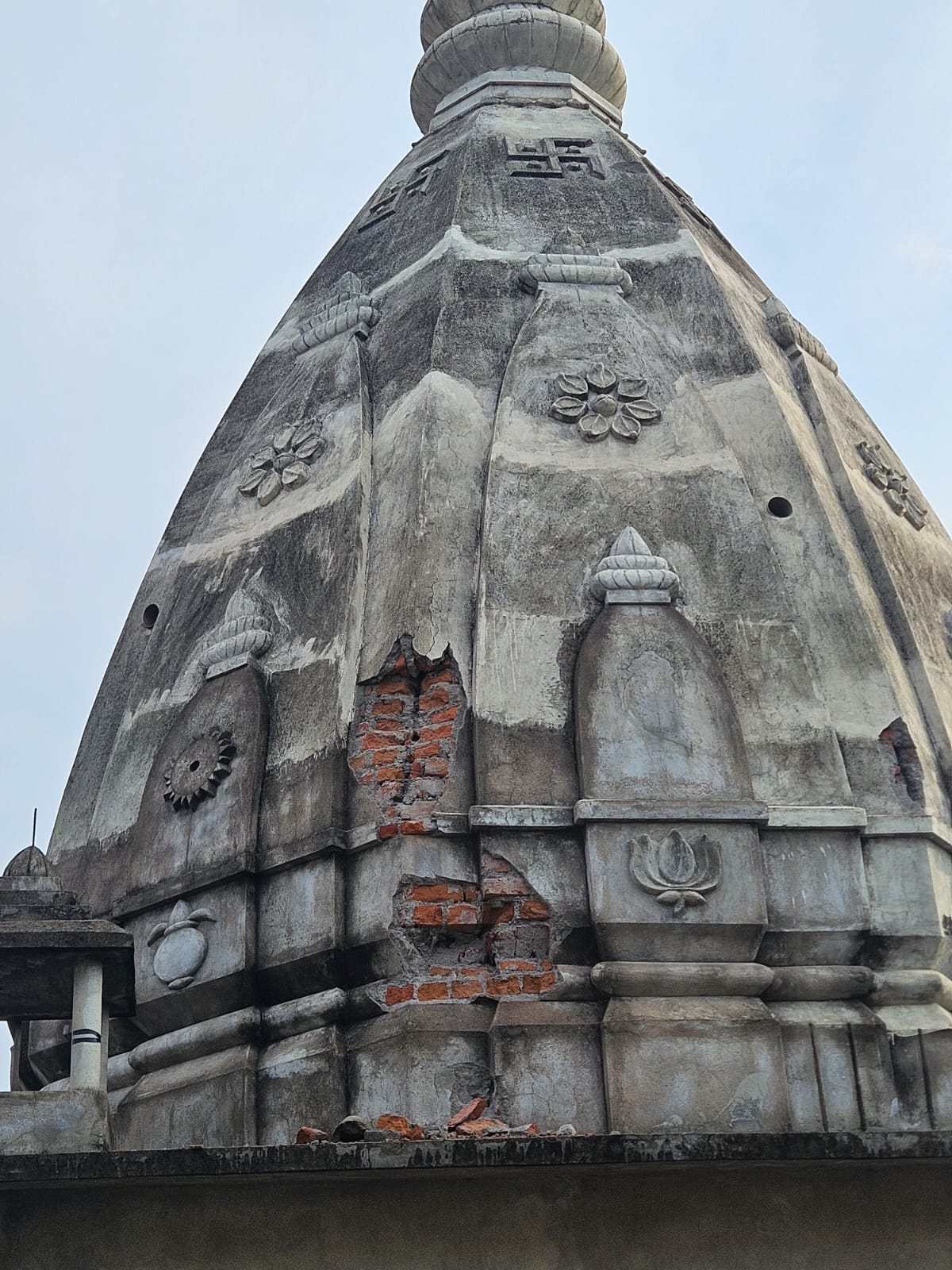झांसी। देर रात हुई तेज बारिश के साथ कड़कती हुई आकाशीय बिजली मंदिर की गुम्मद पर जा गिरी जिससे गुम्मद में दरारें आ गई। सुबह जब मंदिर पुजारी मंदिर के अंदर पहुंचे तो देखा पानी भरा हुआ था। लेकिन पानी कहा से आया इसकी छानबीन की तो देखा मंदिर की गुम्मद में दरारें पड़ी हुई है। आशंका व्यक्त की जा रही है कि देर रात आकाशीय बिजली गिरने से यह घटना क्रम हुआ है।जानकारी के मुताबिक सीपरी बाजार कारगिल पार्क स्थित राधा कृष्ण मंदिर की गुम्मद में भारी दरारें आ पड़ गई। जिससे बरसात का पानी मंदिर में आने लगा लगा। बताया जा रहा है कि देर रात हुई बारिश का पानी आकाशीय बिजली गिरने से गुम्मद में आई दरारें के चलते मंदिर परिसर में आया है। मंदिर की गुम्मद पर आकाशीय बिजली गिरने की सूचना पर सुबह काफी भीड़ एकत्रित हो गई थी।