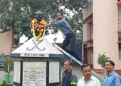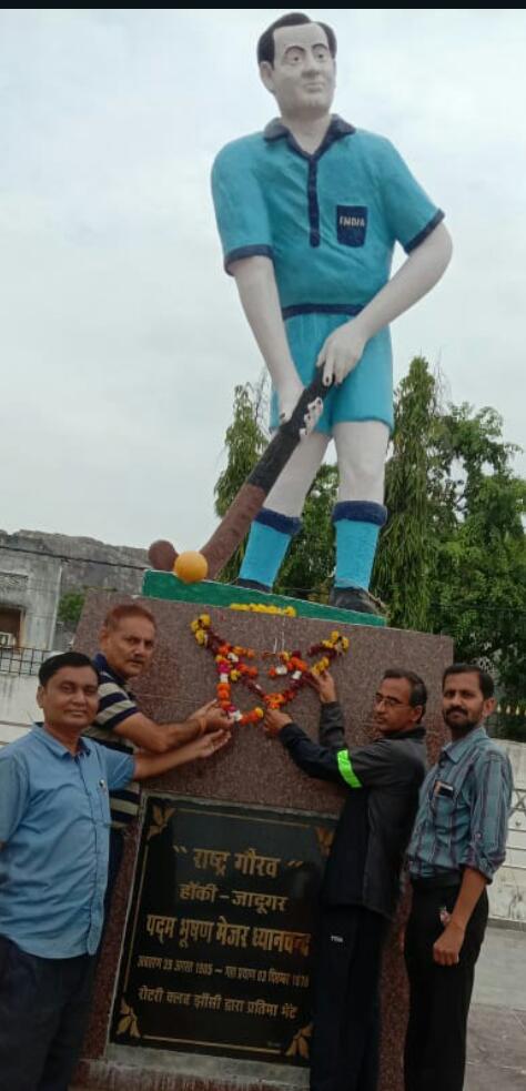 झांसी। अपने जादुई खेल से सम्पूर्ण विश्व को अचंभित करने वाले हाकी के जादूगर मेजर ध्यानचंद की जयंती पर खेल पत्रकार संघ द्वारा मेज़र ध्यान चन्द स्टेडियम,हीरोज ग्राउंड सीपरी बाजार एवं लहरगिर्द पहाड़ी पर स्थित दद्दा की प्रतिमा पर माल्यार्पण कर श्रद्धा सुमन अर्पित किए गए। इस अवसर पर आशुतोष शर्मा, मुकेश त्रिपाठी, राजेश कुमार चौरसिया एड, इमरान खान, सुदर्शन शिवहरे, मनमोहन मनु, रवीश त्रिपाठी, दीपक चंदेल,रानू साहू आदि ने दद्दा ध्यानचंद की प्रतिमा पर माल्यार्पण कर श्रद्धासुमन अर्पित करते हुए केन्द्र सरकार से शीघ्र ही दद्दा ध्यानचंद को भारत रत्न प्रदान किए जाने की मांग की।