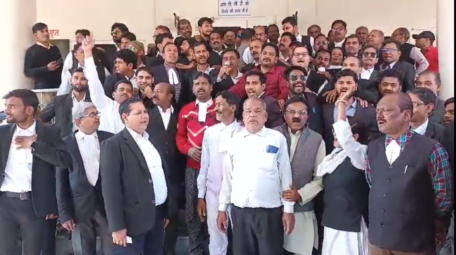 एमएसीटी कोर्ट ओर पूर्व मंत्री सहित अधिवक्ताओं पर हुए मुकदमे के विरोध में अधिवक्ताओं का प्रदर्शन