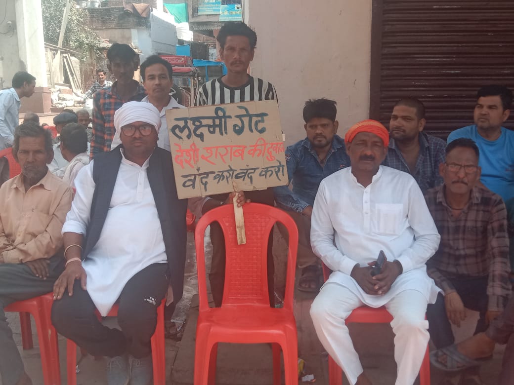 देशी शराब की दुकान हटाने की मांग को लेकर धरना प्रदर्शन शुरू