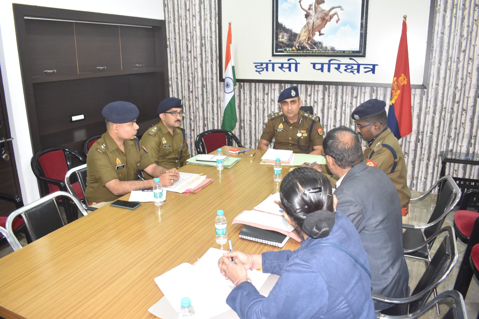 झांसी। पुलिस उपमहानिरीक्षक झाॅसी, परिक्षेत्र झाॅसी द्वारा परिक्षेत्रीय कार्यालय झाॅसी में परिक्षेत्र के जनपद झाॅसी, जालौन व ललितपुर के जनपद प्रभारियों के साथ मासिक समीक्षा बैठक की गयी। जनपद जालौन में अपराधियों के विरूद्ध चलाये जा रहे अभियान की प्रशंसा करते हुये जनपद झाॅसी व ललितपुर में भी अपराधियों के विरूद्ध इसी तरह की कार्यवाही किये जाने की अपेक्षा की गयी। डी0आई0जी0 झाॅसी द्वारा अपराधों की समीक्षा करते हुये जनपद प्रभारियों को आवश्यक दिशा-निर्देश दिये गये है। समीक्षा बैठक में प्रमुख रूप से निम्नलिखित बिन्दुओं पर समीक्षा की गयी-