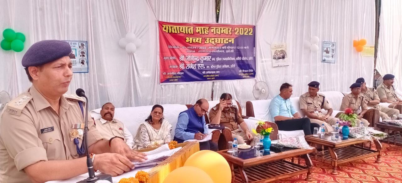 झांसी। नगर में यातायात माह नवंबर का आज डीआईजी जोगेंद्र सिंह ने ट्रैफिक कार्यालय में शुभारंभ किया। इस दौरान उन्होंने सभी से यातायात व्यवस्था को दुरुस्त और सड़क दुर्घटनाओं को रोकने के लिए महत्वपूर्ण भूमिका निभाने की अपील की है। मंगलवार को ट्रैफिक कार्यालय में आयोजित यातायात माह के शुभारंभ कार्यक्रम के मुख्यातिथि डीआईजी जोगेंद्र सिंह ने कार्यक्रम का फीता काट कर शुभारंभ किया। कार्यक्रम के पूर्व मां सरस्वती के चित्र पर माल्यार्पण कर दीप प्रवज्जलित किया। इस दौरान डीआईजी ने सभी से अपील करते हुए कहा की यातायात माह को हम सब को मिलकर सफल बनाना है। सिविल पुलिस, बस, ओटो चालाक सभी मिलकर लोगों को यातायात के नियमों का पालन कराने का प्रशिक्षण दे और ऑटो चालक वर्दी में वाहन चलाए। बिना हेलमेट, बिना लाइसेंस बाइक सवार, चार पहिया वाहनों चालकों के खिलाफ अभियान चलाकर कार्यवाही की जाएगी और उन्हे यातायात के नियमों का पालन कराया जायेगा। वही उन्होंने कहा की हाईवे पर भी यातायात और सिविल पुलिस एक अभियान चलाएगी जिससे हाईवे पर आस पास रहने वाले लोगों को प्रशिक्षण दिया जायेगा जिससे हाईवे पर होने वाली सड़क दुर्घटनाओं को रोका जा सके। इस दौरान यातायात माह का शुभारंभ की अध्यक्षता कर रहे एसपी सिटी राधेश्याम राय, एसपी देहात नेपाल सिंह, यातायात क्षेत्राधिकारी/सदर सर्किल क्षेत्राधिकारी अविनाश गोतम, सीओ सिटी राजेश राय, सहित समाज सेवी डॉक्टर नीति शास्त्री सहित ऑटो टैक्सी यूनियन, ट्रांसपोर्ट यूनियन बस यूनियन के पदाधिकारी उपस्थित रहे।