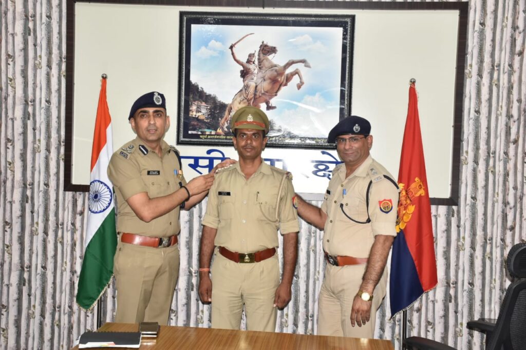 पदोन्नत हुए छह पुलिस कर्मियों को डीआईजी एसएसपी ने स्टार लगाकर दी शुभकामनाएं