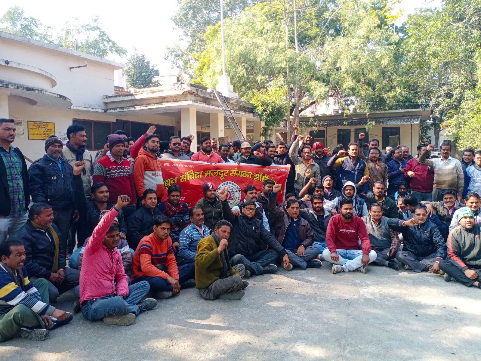तीन माह से वेतन न मिलने पर अनिश्चित कालीन हड़ताल पर बैठे कर्मचारी