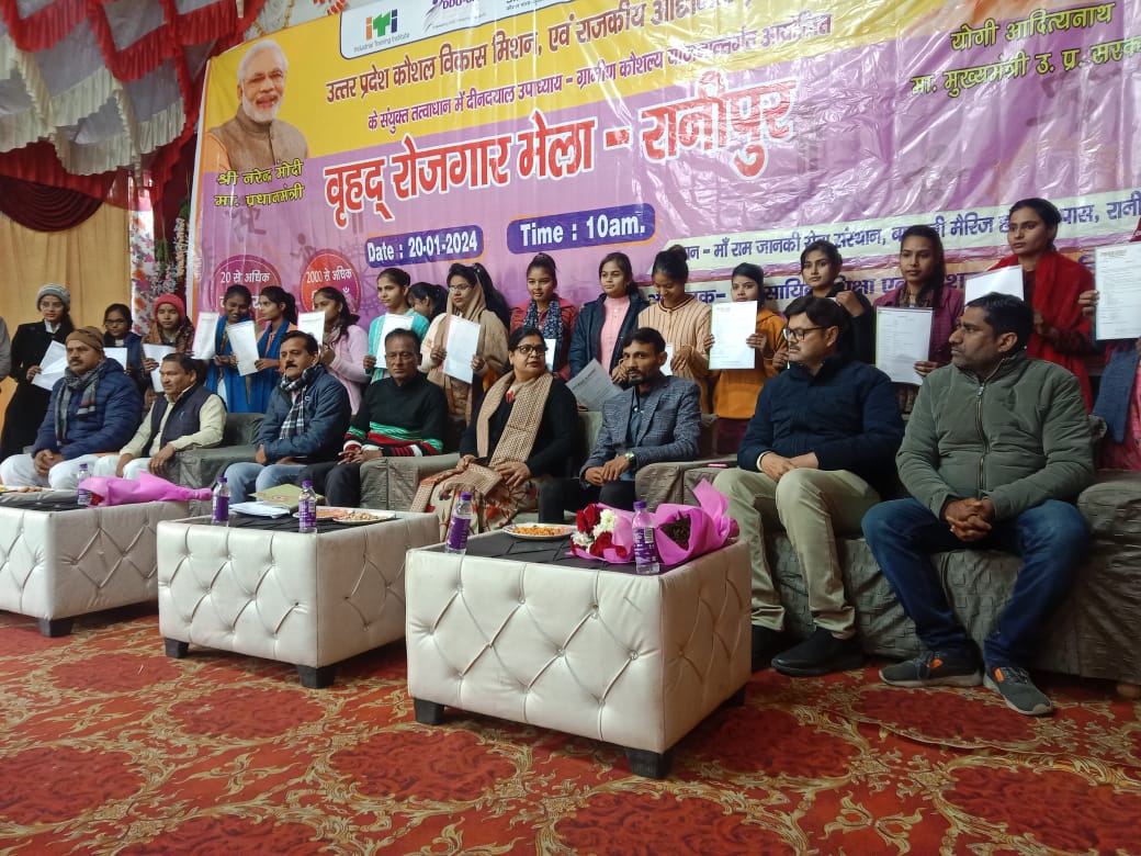 झांसी। दीनदयाल उपाध्याय ग्रामीण कौशल्य योजना, उ0प्र0 कौशल विकास मिशन एवं राजकीय औद्योगिक प्रशिक्षण संस्थान के संयुक्त तत्वाधान में आज शनिवार को राम जानकी सेवा संस्थान रॉयल पैलेस रानीपुर विकासखंड बंगरा में रोजगार मेले का आयोजन किया गया रोजगार मेले में मुख्य अतिथि विधायक मऊरानीपुर मति रश्मि आर्य द्वारा शुभारंभ किया गया। मुख्य अतिथि द्वारा उपस्थित युवाओं को संबोधित किया एवं सरकार द्वारा संचालित उत्तर प्रदेश कौशल विकास मिशन के अंतर्गत योजनाओं के विषय में बताया गया। जिला कौशल प्रबंधक नीरज कुमार यादव द्वारा युवाओं को प्रोत्साहित करते हुए कहा गया कि सरकार की योजनाओं का लाभ लेते हुए रोजगार स्थापित करें। जिला कौशल प्रबंधक आदर्श श्रीवास्तव द्वारा जानकारी दी गई कि उक्त ब्लॉक स्तरीय इस रोजगार मेले में 12 नियोक्ता कंपनियों द्वारा प्रतिभाग किया गया, जिसमें 483 अभ्यर्थियों द्वारा साक्षात्कार हेतु पंजीकरण कराया गया जिसके सापेक्ष 207 अभ्यर्थियों को चयनित किया गया। उक्त कार्यक्रम में मुख्य अतिथि माननीय विधायक मऊरानीपुर श्रीमति रश्मि आर्य द्वारा बच्चों के उज्जवल भविष्य के लिए मार्गदर्शन दिया गया एवं रोजगार के महत्व पर प्रकाश डाला गया एवं अंत में जिला कौशल प्रबंधक नीरज कुमार यादव, उ0प्र0 कौशल विकास मिशन द्वारा सभी अतिथियों का आभार व्यक्त किया गया एवं चयनित अभ्यर्थियों को शुभकामनाएं दी गईं। मेले में राकेश चर्तुवेदी, पुस्पेंद्र, पुरषोत्तम, मधुवेंद्र कुo मेघा एवं कुo माला कुशवाहा आदि सम्मलित हुए।