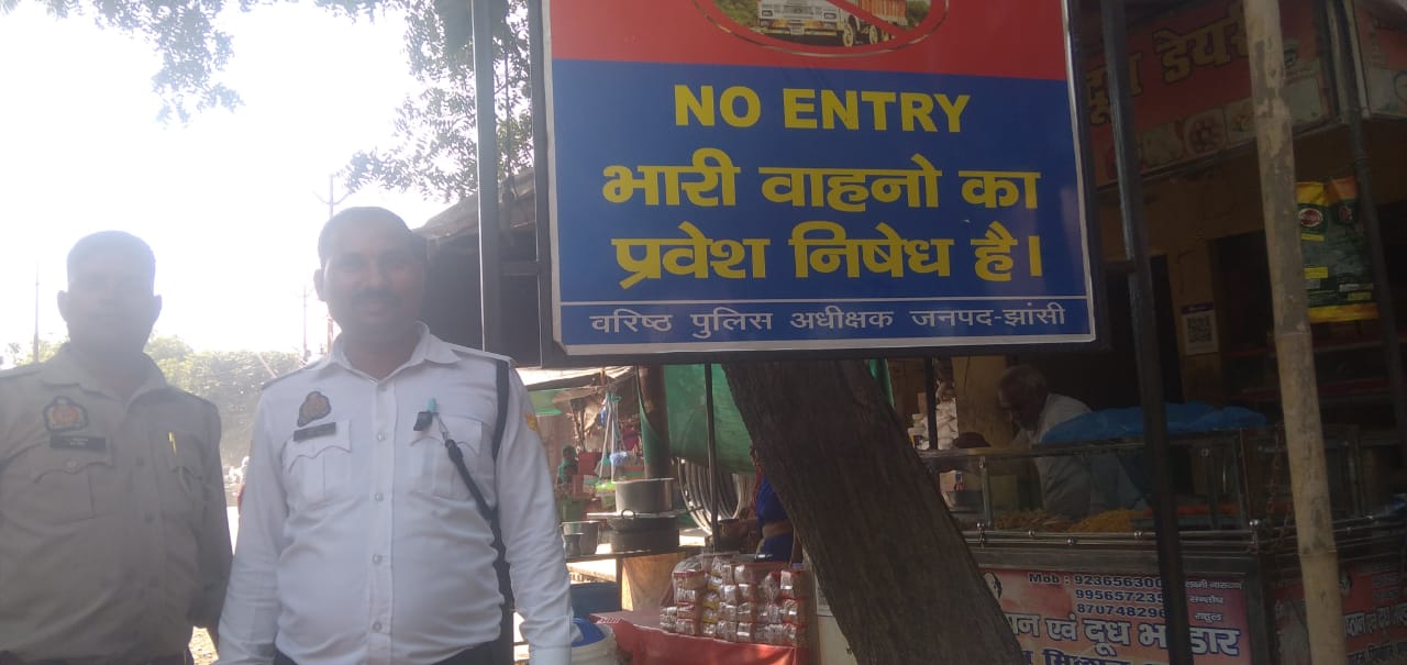 झांसी। यातायात व्यवस्था को चुस्त दुरुस्त रखने और सड़क दुर्घटनाओं को दृष्टिगत रखते हुए जिला प्रशासन के निर्देशन पर यातायात पुलिस ने कमर कस ली है। अब भारी वाहनों का सुबह नौ बजे से रात नो बजे तक शहर में प्रवेश नही हो सकेगा। सिर्फ दैनिक उपयोग और खाद्य सामग्री वाले वाहन आ सकेंगे। सोमवार को यातायात विभाग ने मेडिकल वाई पास, मैरी तिराहा, नया पुल के पास बोर्ड लगाकर भारी वाहनों का शहर में प्रवेश पर रोक लगा दी है। यातायात प्रभारी ने बताया कि झांसी महानगर में किसी कीमत पर नो एंट्री में भारी वाहनों का प्रवेश नही होगा।