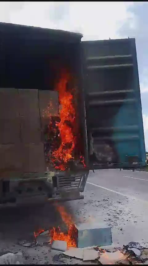 रिवर्स ऑस्मोसिस लेकर जा रहे टैंकर में लगी आग