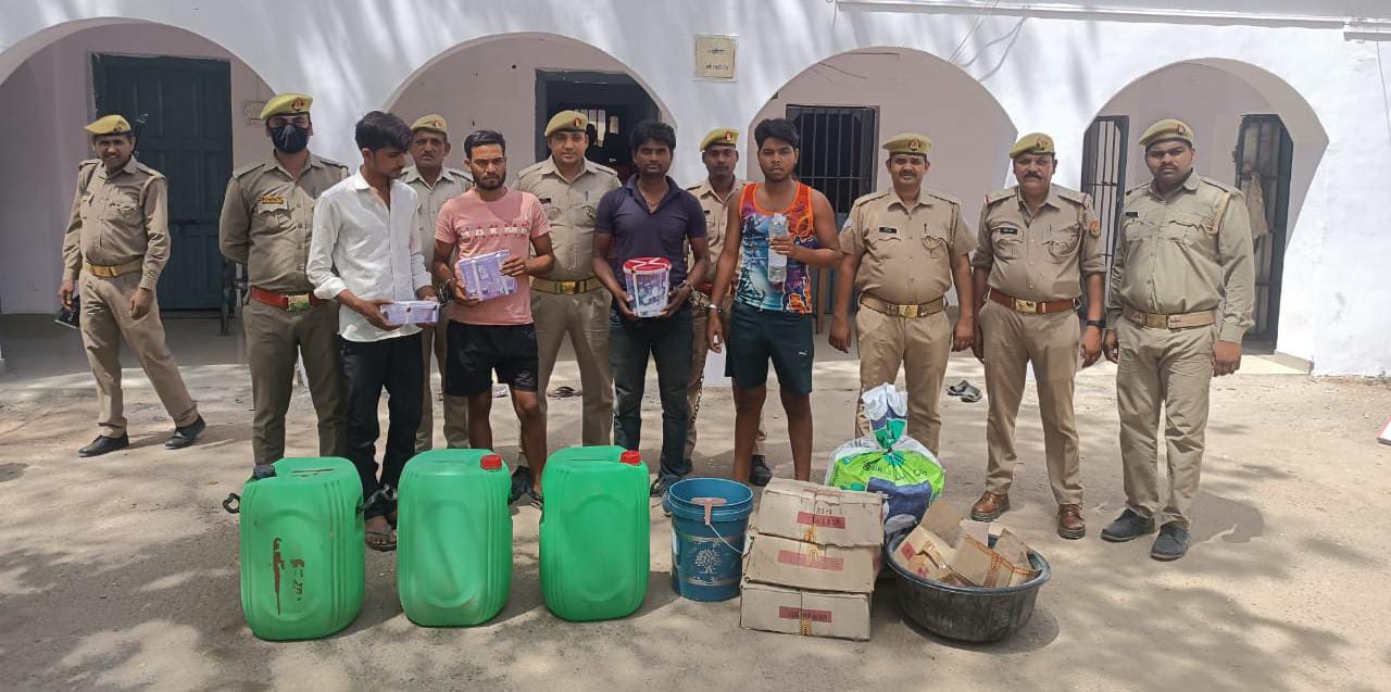 Home उत्तर प्रदेश नकली शराब बना रहे चार गिरफ्तार, देशी शराब की चार पेटी और...