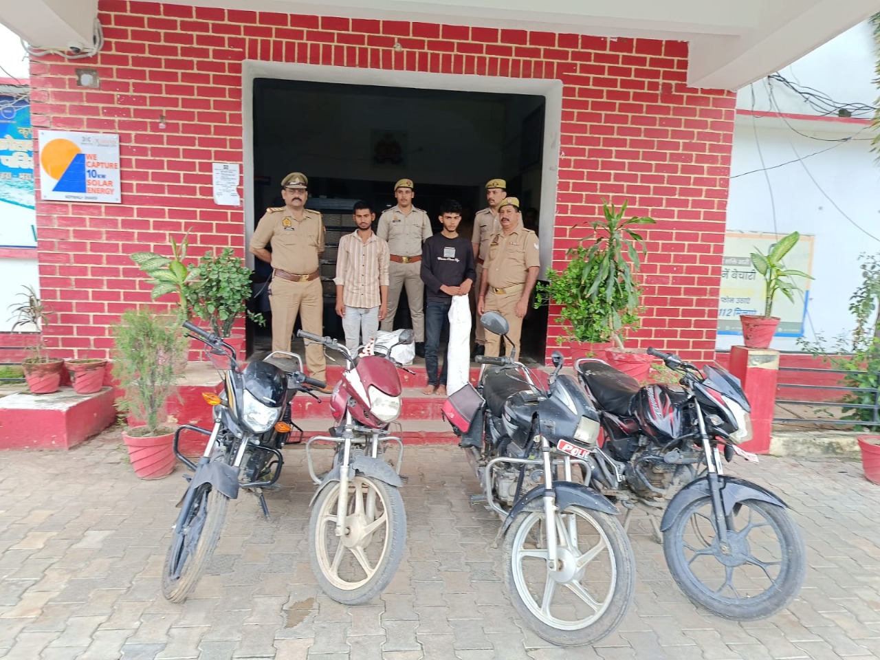 झांसी। देर रात कोतवाली थाना पुलिस ने दो शातिर चोरों को दबोच कर उनके कब्जे से चार बाइक, दो बैटरी ओर तमंचा कारतूस बरामद कर लिए। जानकारी के मुताबिक अतुल सोनी और योगेश ने थाना शहर कोतवाली में बाइक चोरी होने की घटनाओं की रिपोर्ट दर्ज कराई थी। बाइक चोरी होने की घटना को गंभीरता से लेकर एसएसपी ने खुलासा करने के निर्देश दिए थे। एसएसपी बीबीजीटीएस मूर्ति के निर्देशन में देर रात चलाए गए अभियान के तहत थाना शहर कोतवाली पुलिस ने बड़ागांव गेट बाहर आरा मशीन निवासी मयंक यादव, मैरी रोड निवासी दीपक कुशवाह को गिरफ्तार कर उनके कब्जे से एक तमंचा दो जिंदा कारतूस बरामद किए। पुलिस ने उनसे गहराई से पूछताछ की तो दोनों ने बाइक ओर बैटरी चोरी की घटनाओं का जुर्म स्वीकार किया। पुलिस ने उनके कब्जे से दो बैटरी ओर चार चोरी की बाइक बरामद कर ली। पुलिस ने दोनो के खिलाफ अभियोग पंजीकृत कर उन्हें जेल भेज दिया है। कोतवाली प्रभारी निरीक्षक राजेश पाल के मुताबिक पकड़े गए दोनों आरोपियों पर कई अपराधिक मामले दर्ज है।