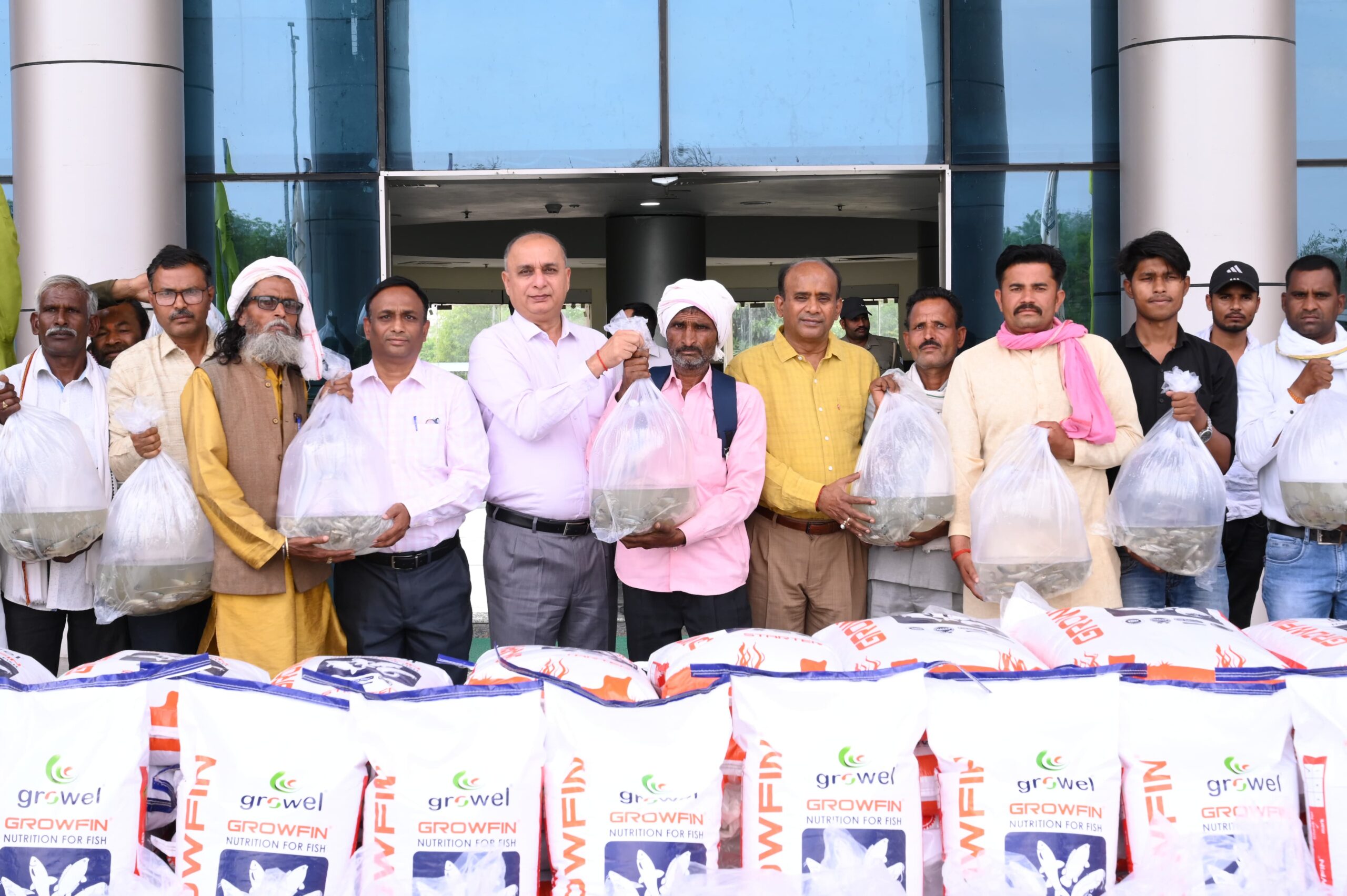 झाँसी। रानी लक्ष्मी बाई केन्द्रीय कृषि विश्वविद्यालय, झाँसी एवं भारतीय कृषि अनुसंधान परिषद नई दिल्ली – केन्द्रीय मात्स्यिकी शिक्षा संस्थान, मुम्बई के संयुक्त तत्त्वाधान में अनुसूचित जाति उप – योजना (एससी एसपी) के अंतर्गत आज दिनांक 09.04.2024 को अग्रिम पंक्ति प्रदर्शनी कार्यक्रम आयोजित किया गया l इस कार्यक्रम में बुंदेलखंड के चार जिलों जैसे झाँसी, ललितपुर, उरई एवं शिवपुरी के कमजोर वर्ग के ३० किसानो को विश्वविद्यालय के कुलपति डॉ. अशोक कुमार सिंह, निदेशक प्रसार शिक्षा डॉ. एसएस सिंह एवं अधिष्ठाता मत्स्य डॉ. बिजय कुमार बेहेरा के द्वारा मछली का बीज, खाना, सरसों की खली, चूना, गोबर की खाद, विटामिन, प्रोटीन, मिनरल मिक्सचर एवं अन्य सामग्री मछली पालक किसानों को वितरित किया गया l इस अवसर पर डॉ. नीलेश कुमार, पार्थ सारथी त्रिपाठी, सत्यनारायण परिडा, अजय कुमार राउत, चरन सिंह कुशवाहा, आदि उपस्थित रहे।